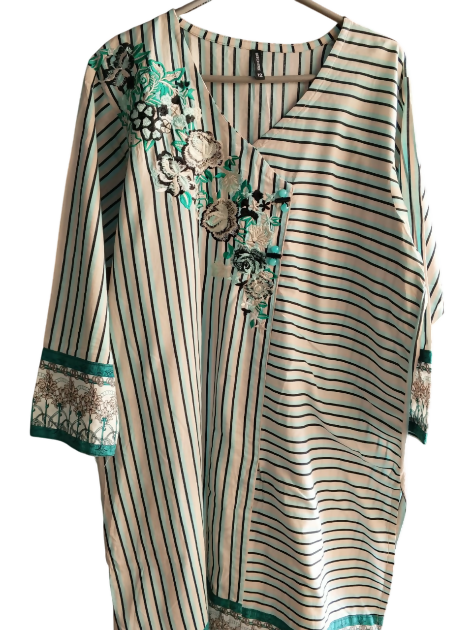 | MATERIAL & MEASUREMENT | Material : Lawn Size: Large Measurements: Chest: 22 Sleeves: 21 |