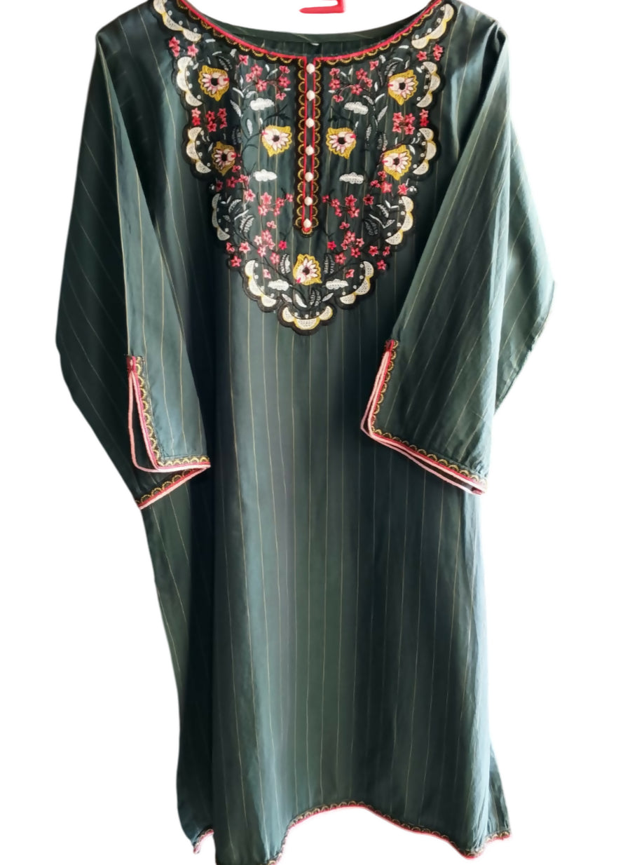 Beechtree | Green Embroidered Kurta | Women Branded Kurta | Large | Worn Once is backordered and will ship as soon as it is back in stock.