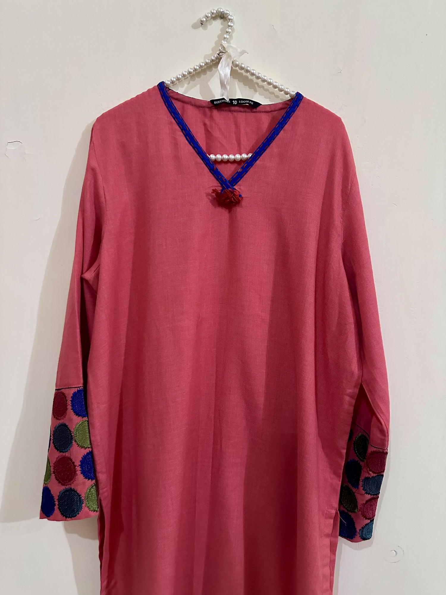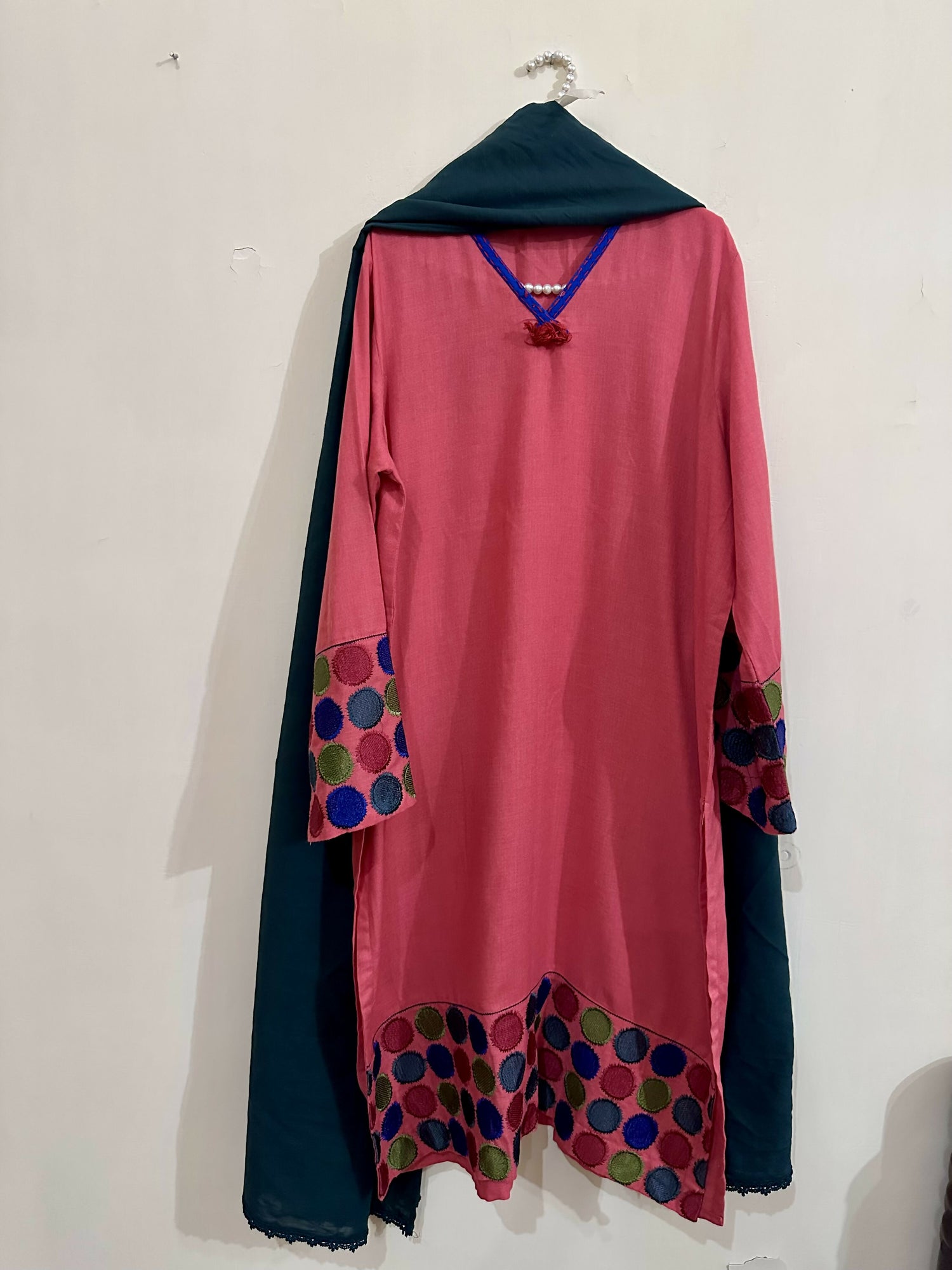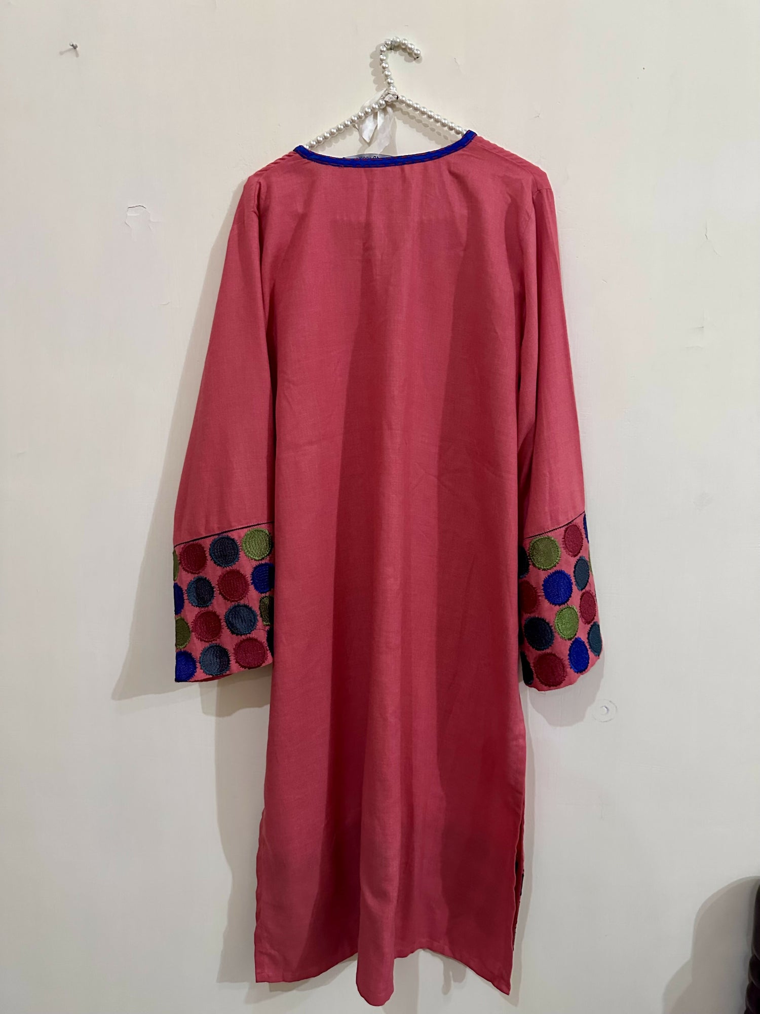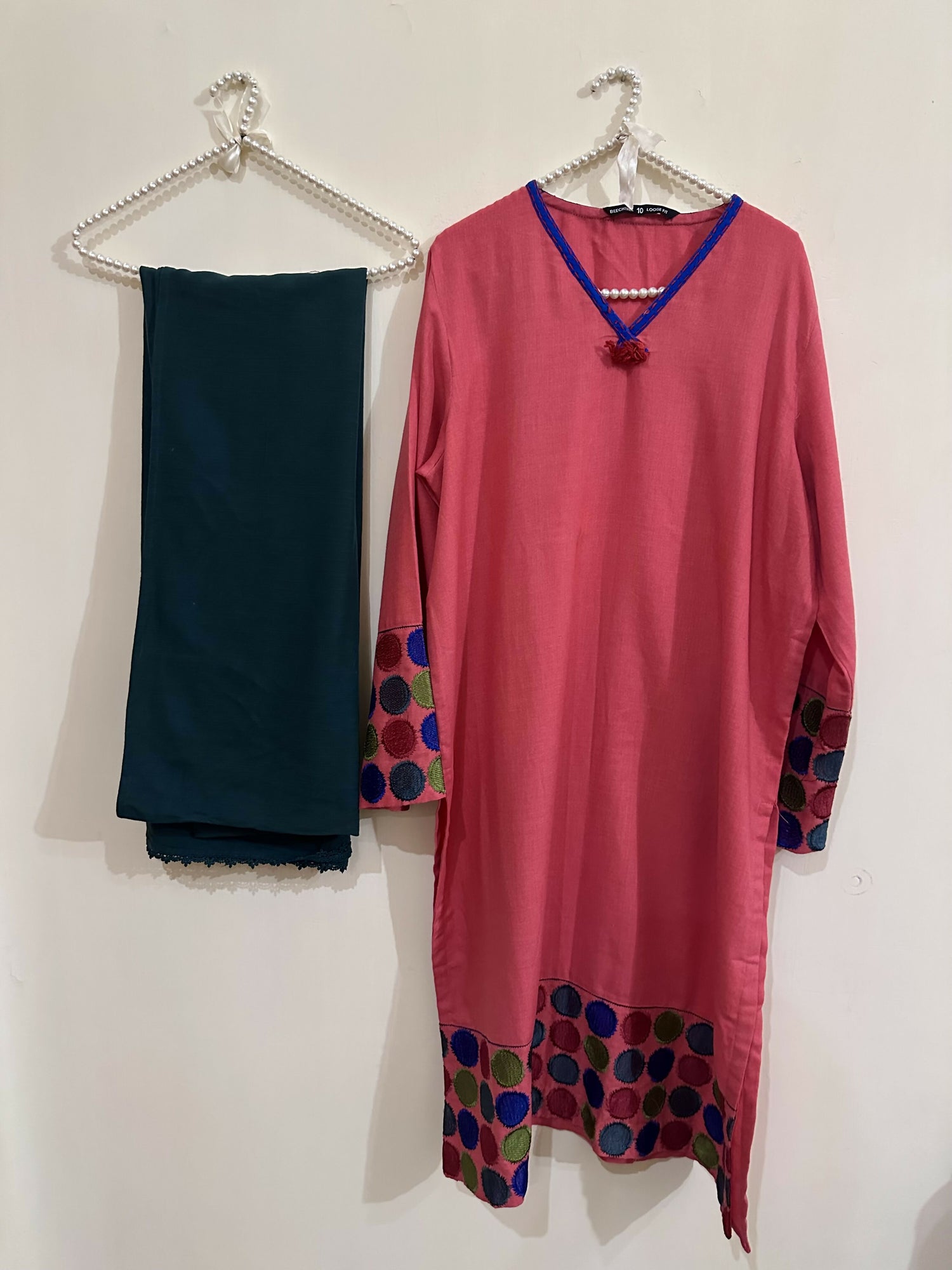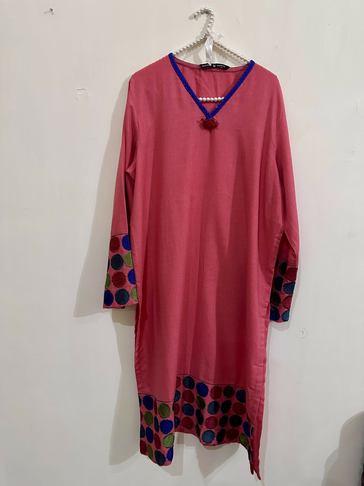 MATERIAL & MEASUREMENT Fabric / Material: khaddar Matching shawl by khaadi Measurement : Chest: 21.5 Shoulder: 15 Length: 42