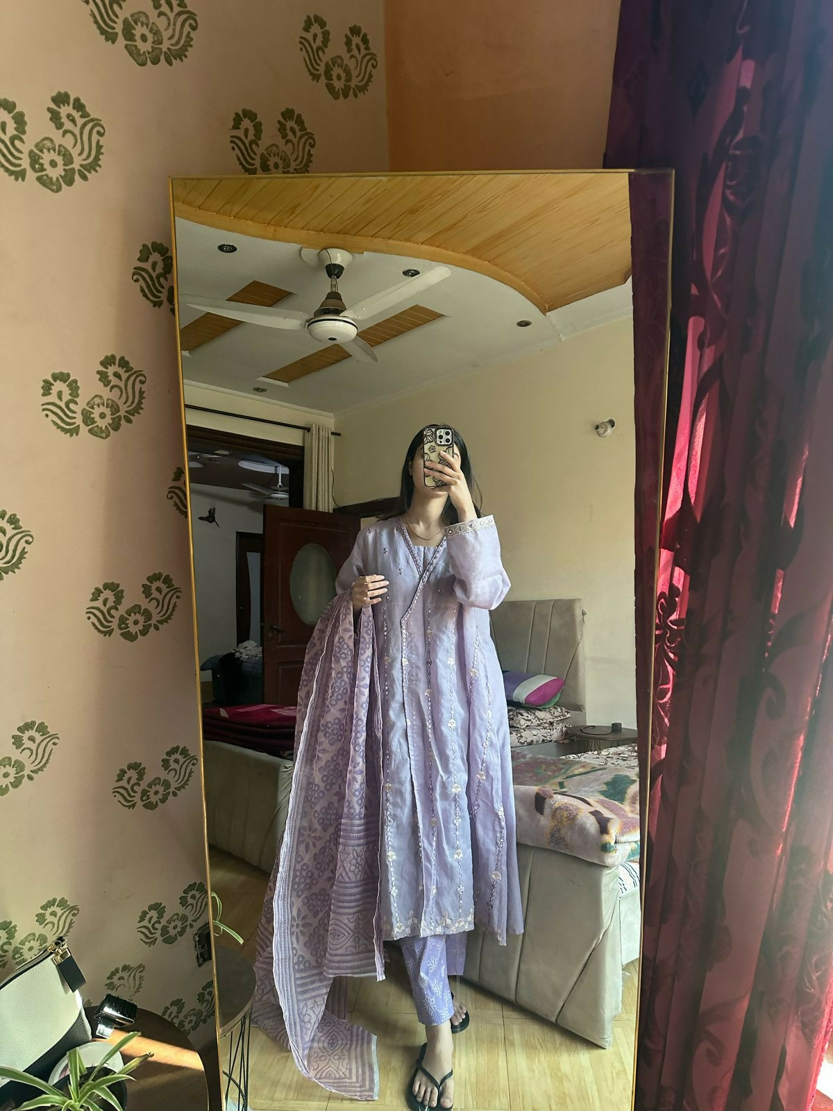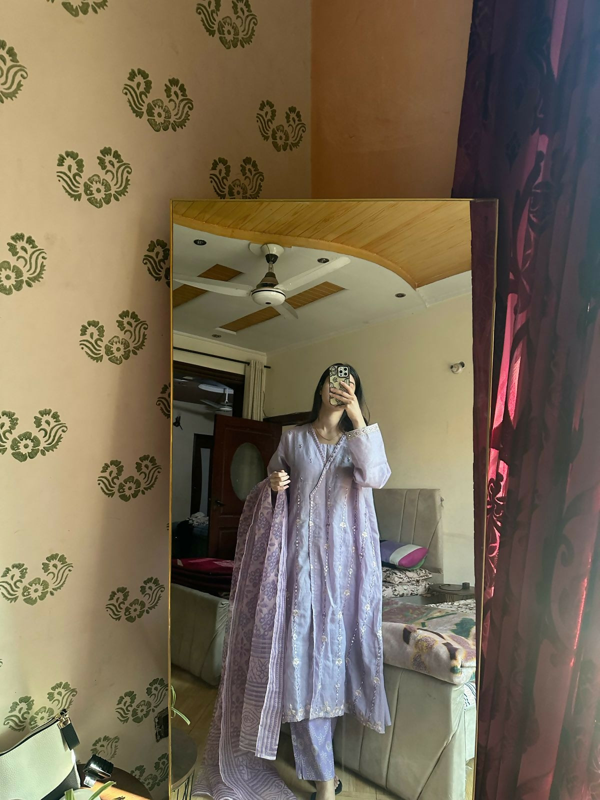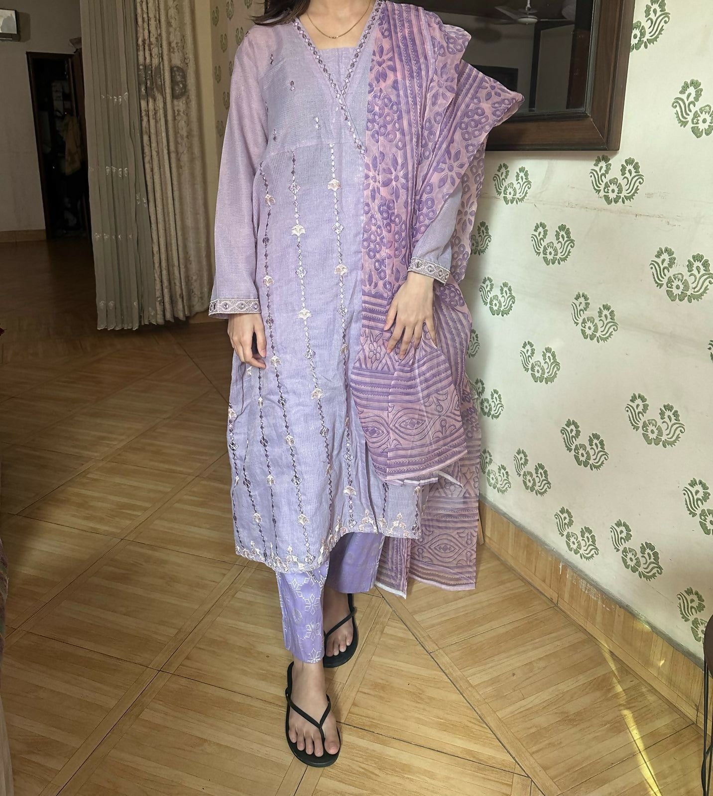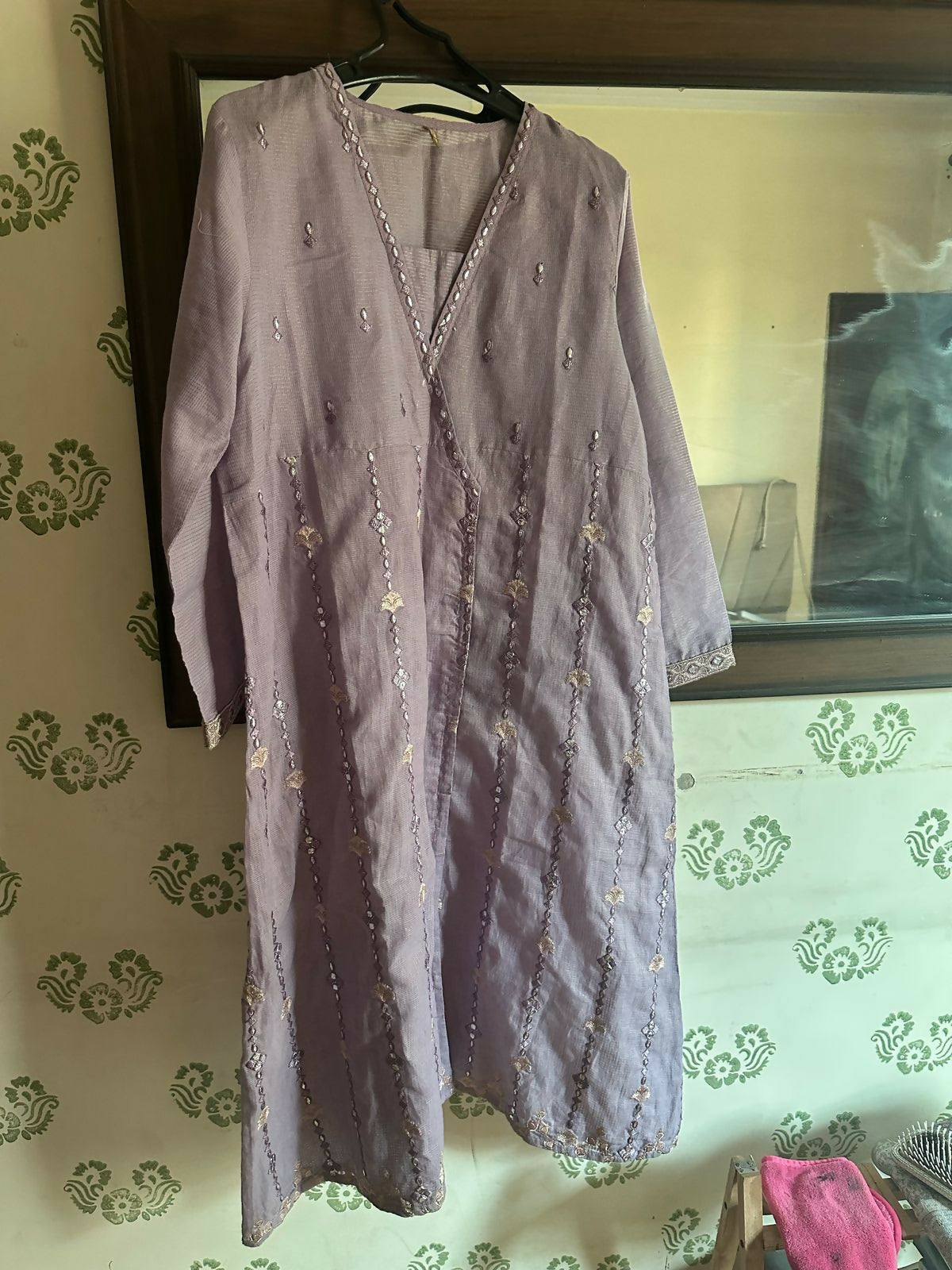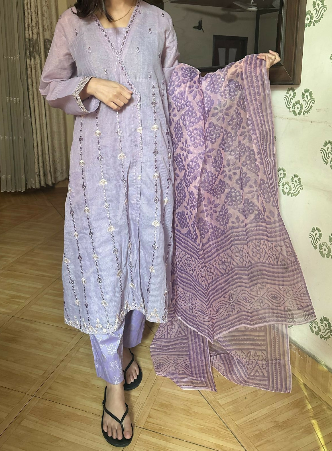 3 Embrioded Shirt Angrakha Style , trouser &nTissue duppta