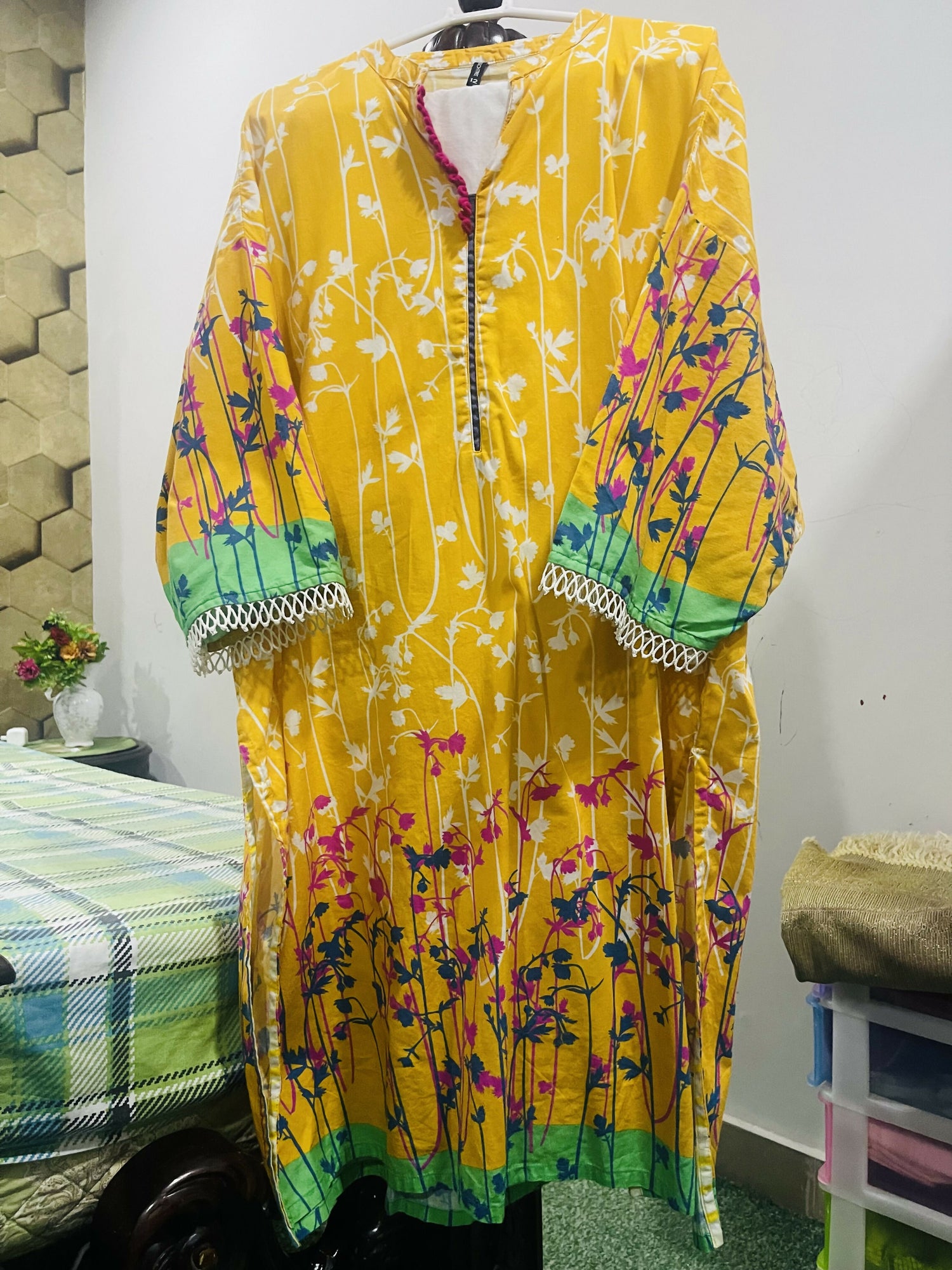 | MATERIAL & MEASUREMENT | Cambric Medium size Size 12 Drop shoulder |