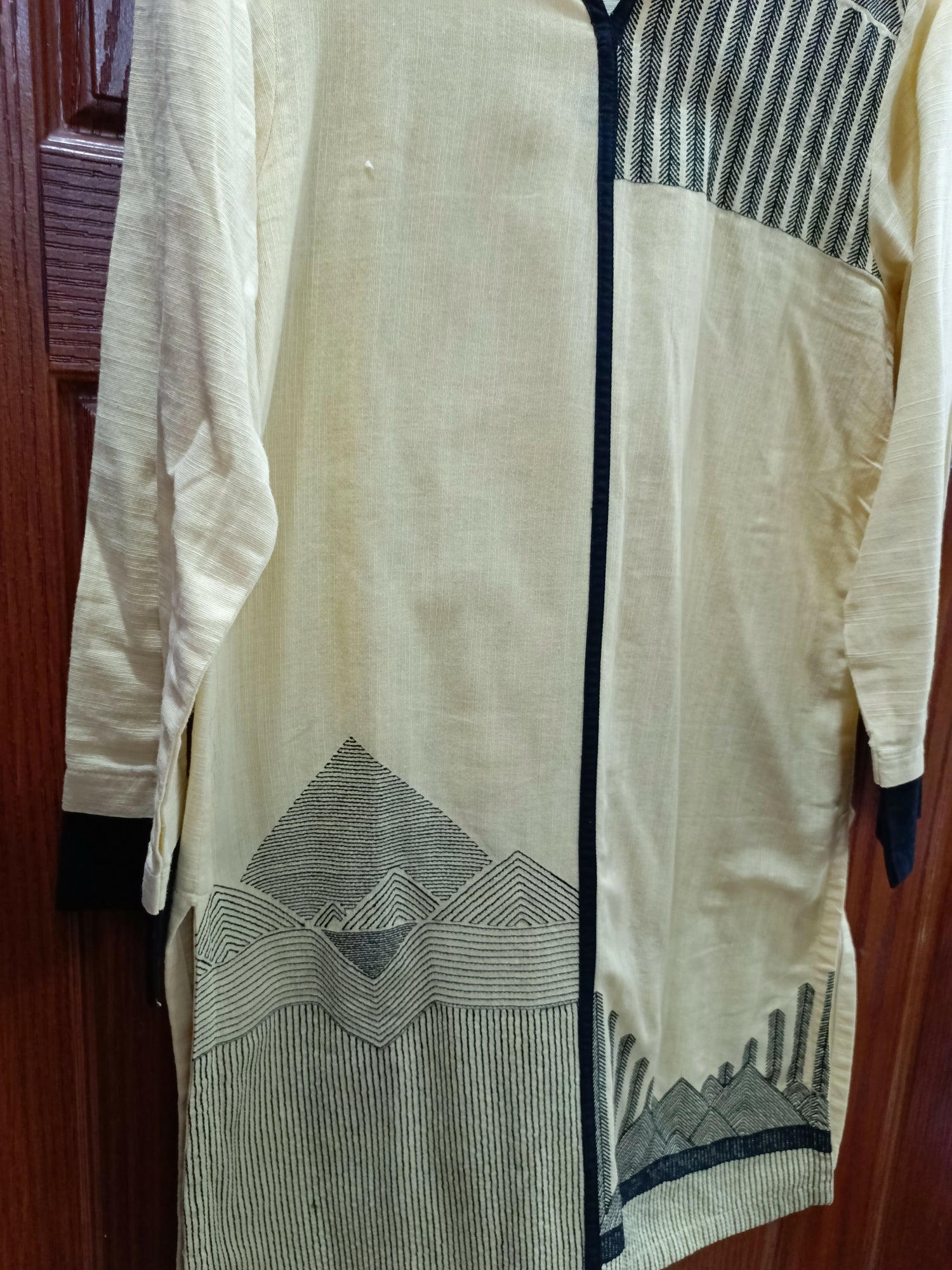 | MATERIAL & MEASUREMENT | Khaddar Measurements Chest : 38 Shoulder : 16 Sleeves : 22 Length : 35 |