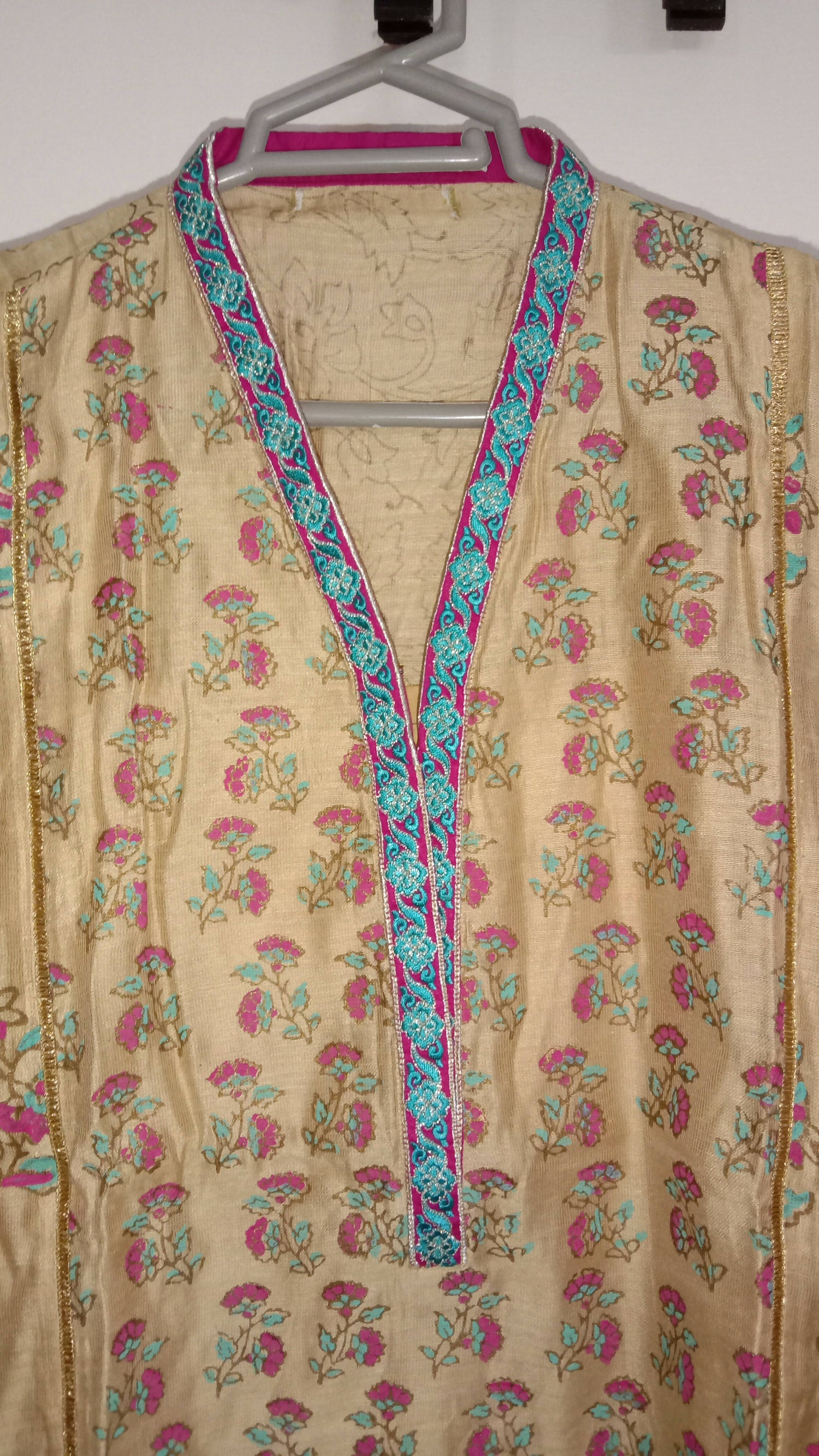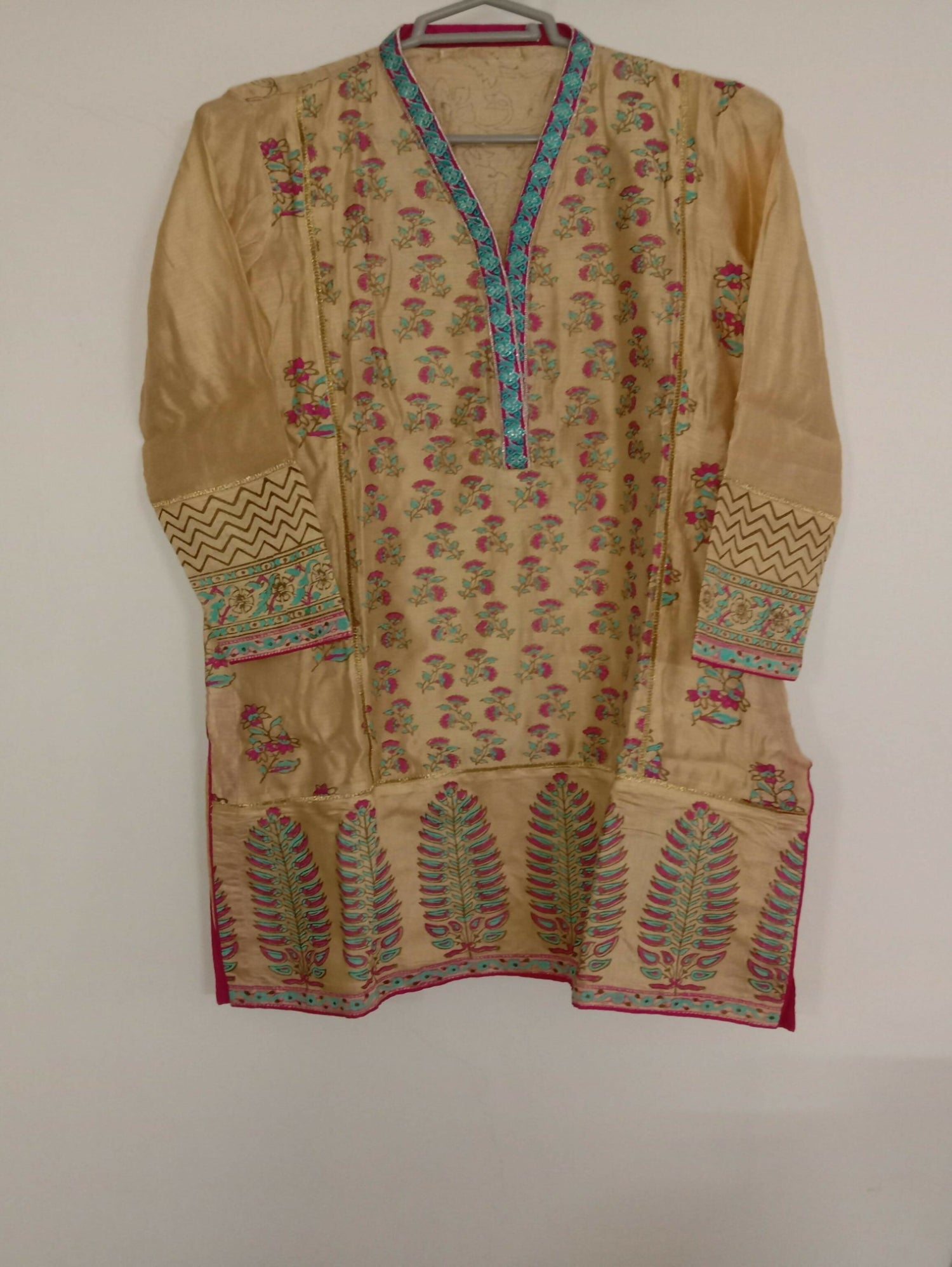 Beige & pink Block print Kurta | Women Locally Made Kurta | Small | New