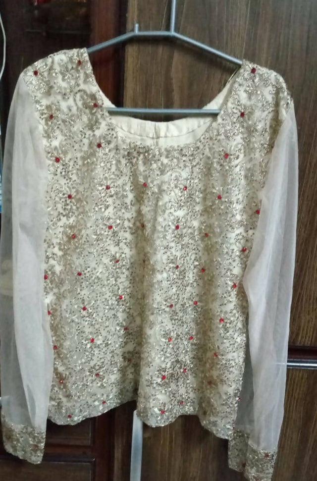 Beige Black Shirt Lehnga | Women Locally Made Formals | Large | Preloved