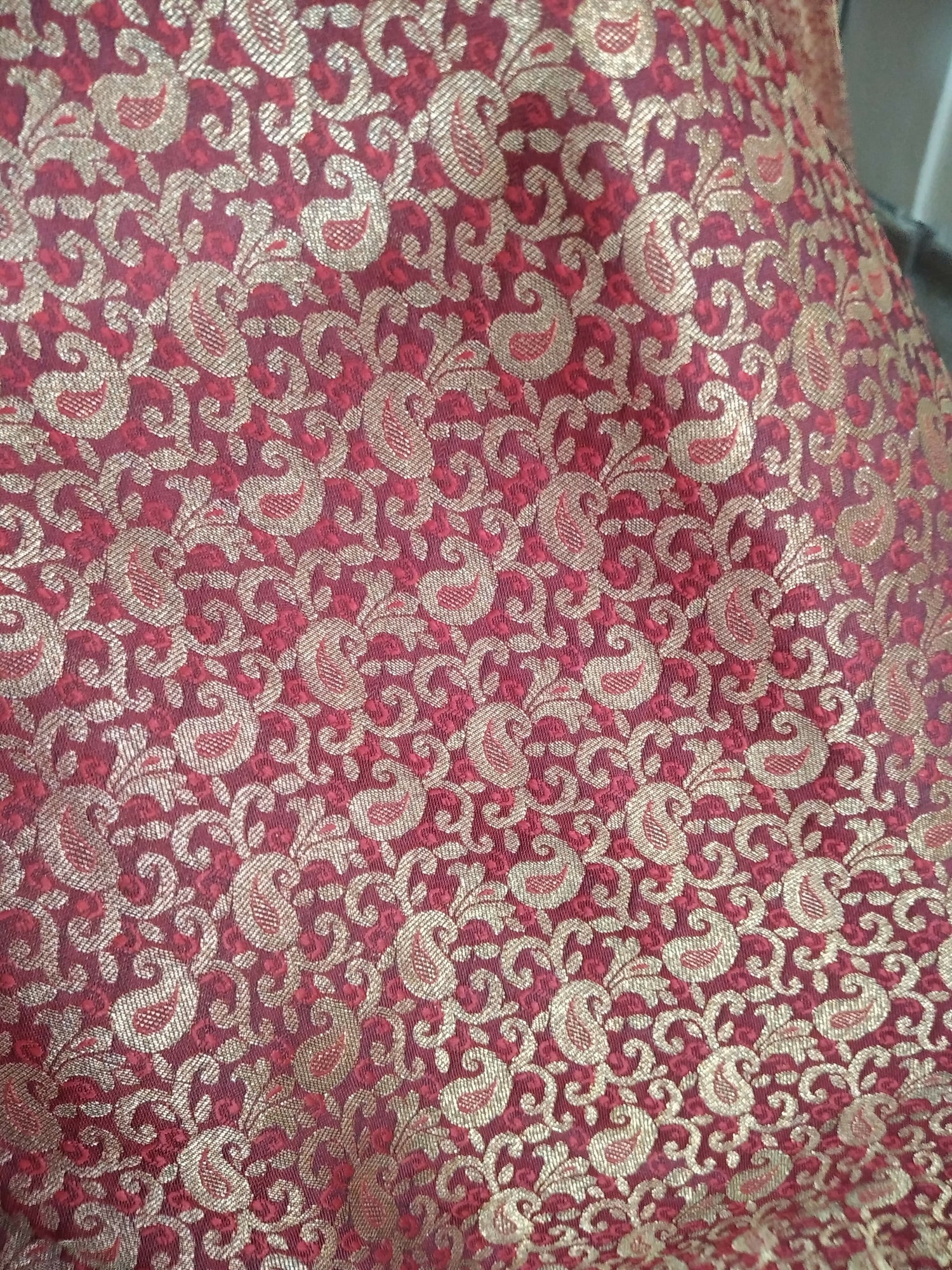 Fabric: Banarsi Shirt with maroon jamawar Dhaka pajama and ready to wear black dupatta 3 PC complete suit