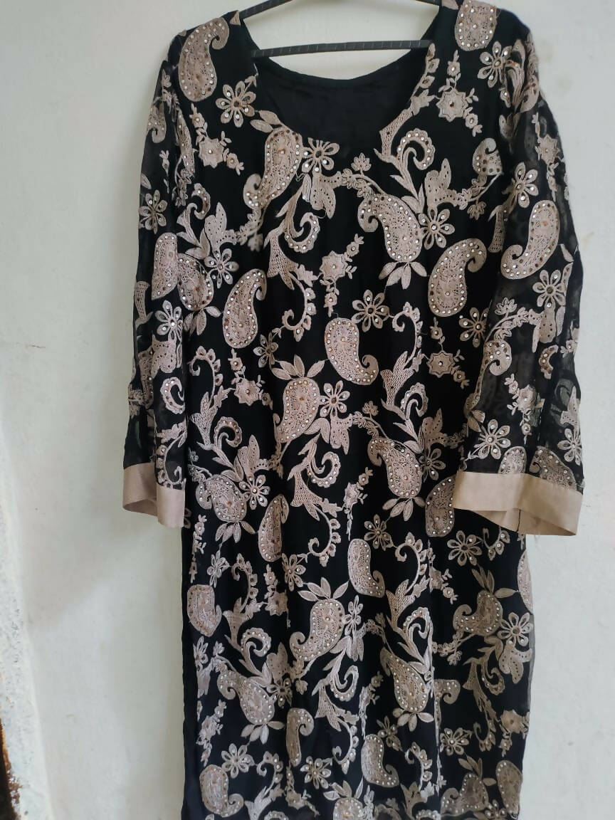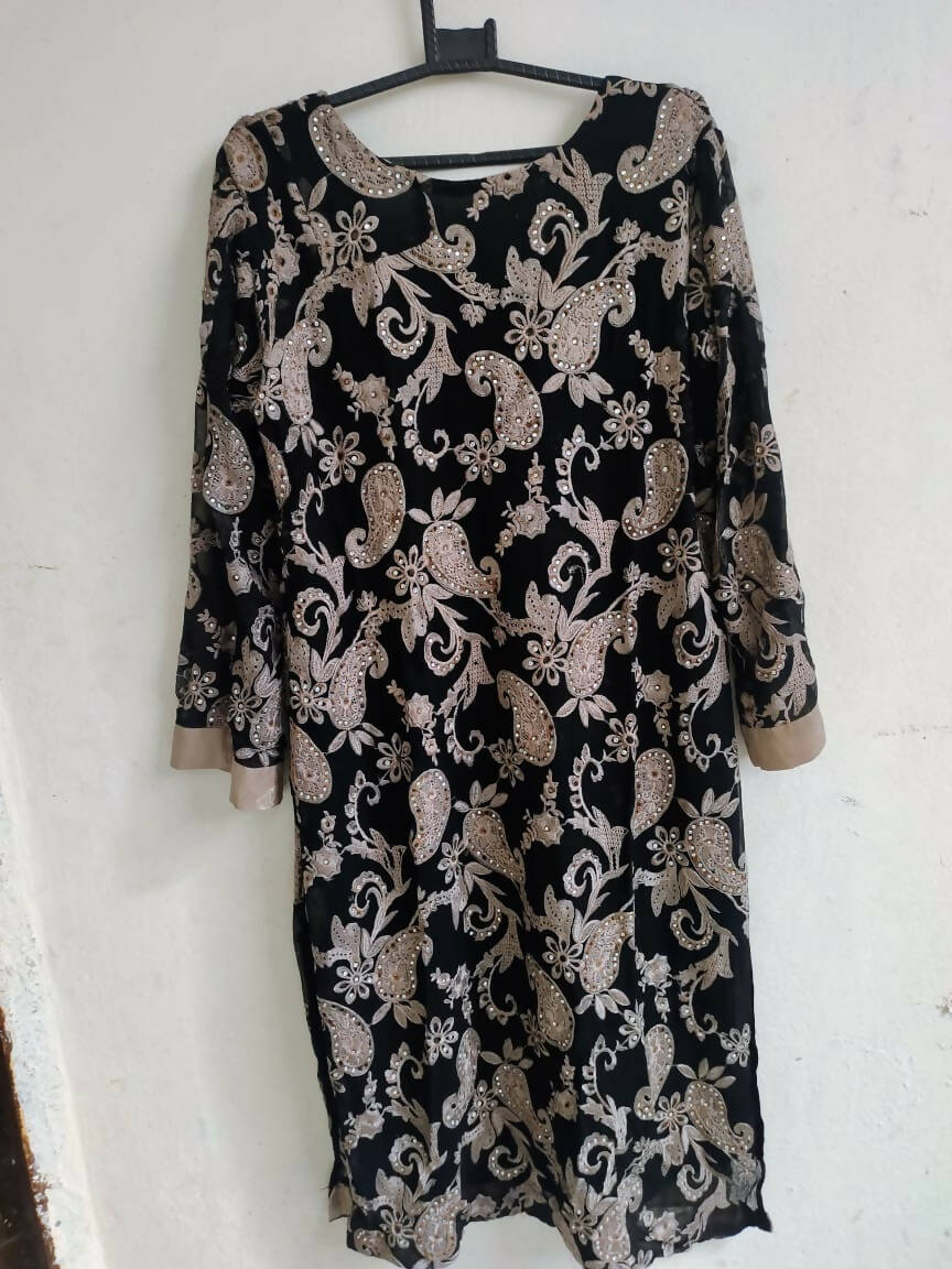 Black Embroided Kurta with Stone Work | Women Locally Made Kurta | Medium | Preloved