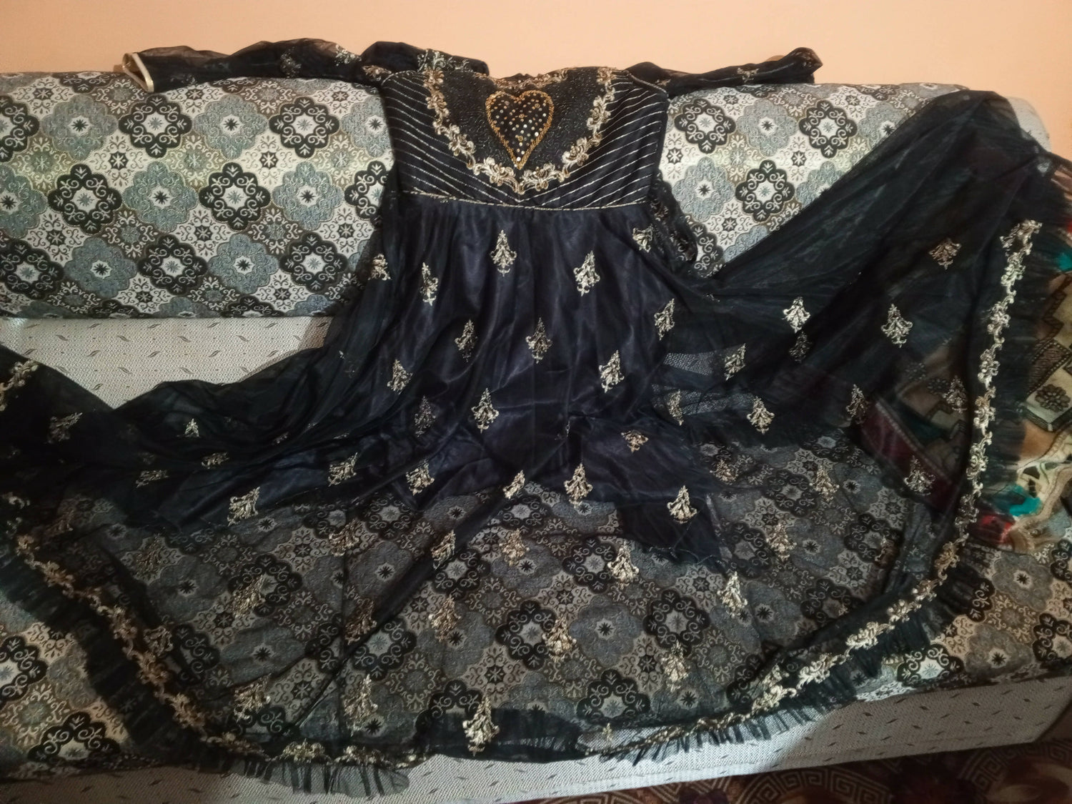 Fabric:Black net embroidery beautiful maxi