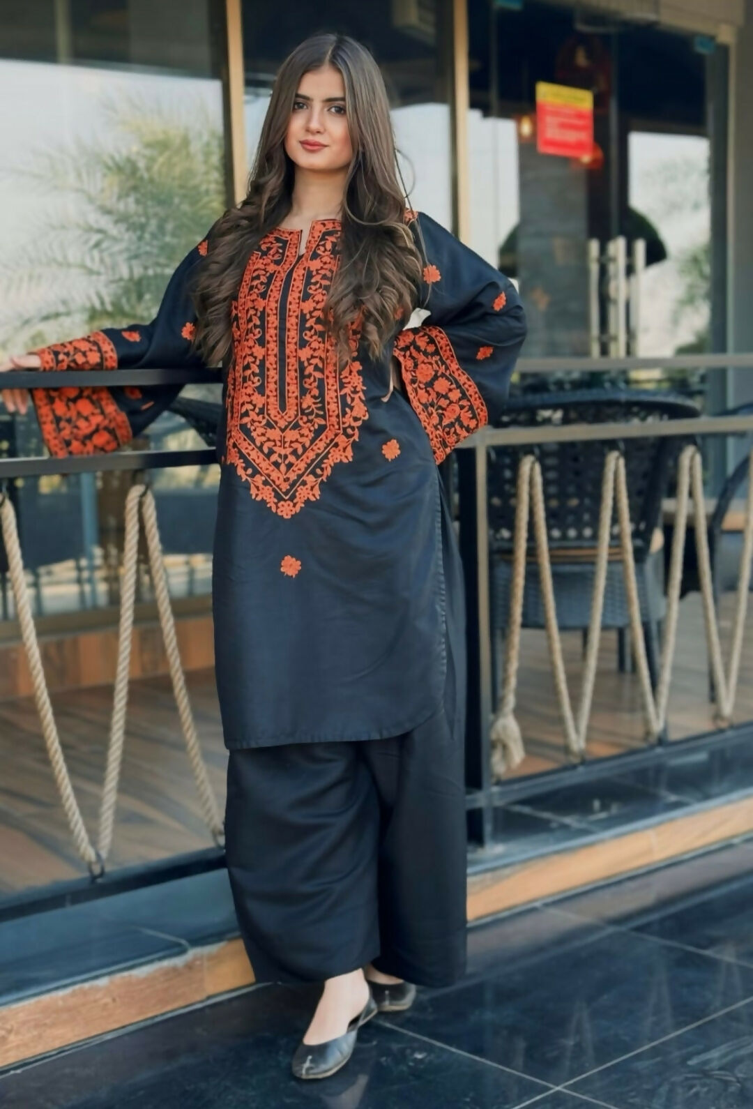 Black Embroidered 2 PC | Women Locally Made Kurta | Size: Medium, Large | Brand New - M is backordered and will ship as soon as it is back in stock.
