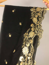 Black Velvet Suit with Chiffon Dupatta | Women Locally Made Formals | Medium | Worn Once