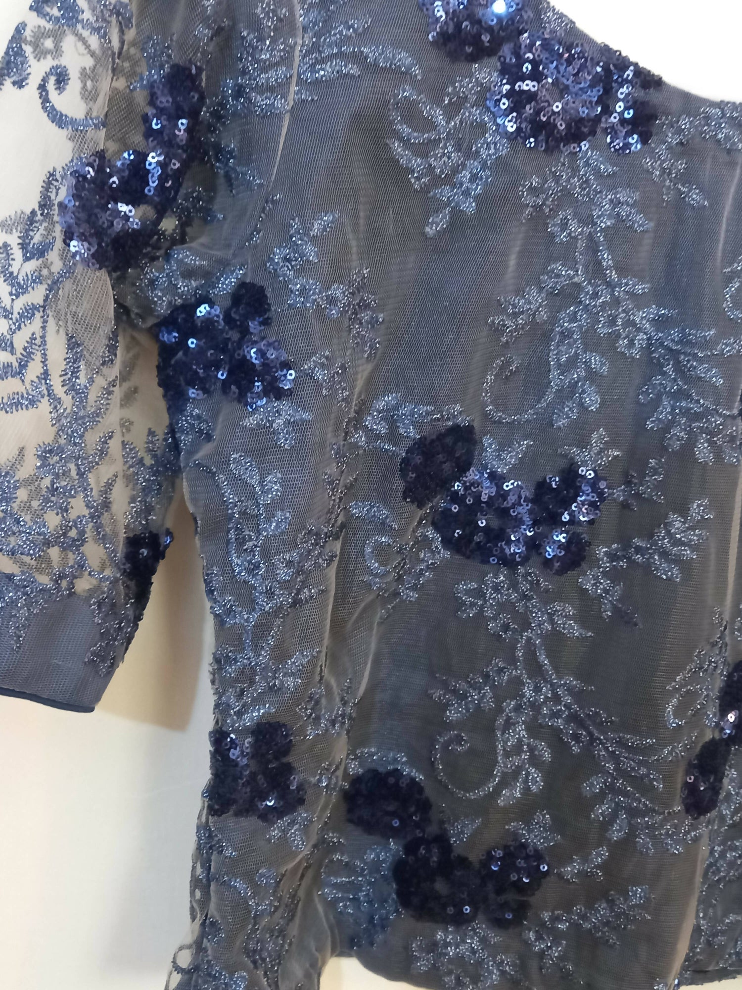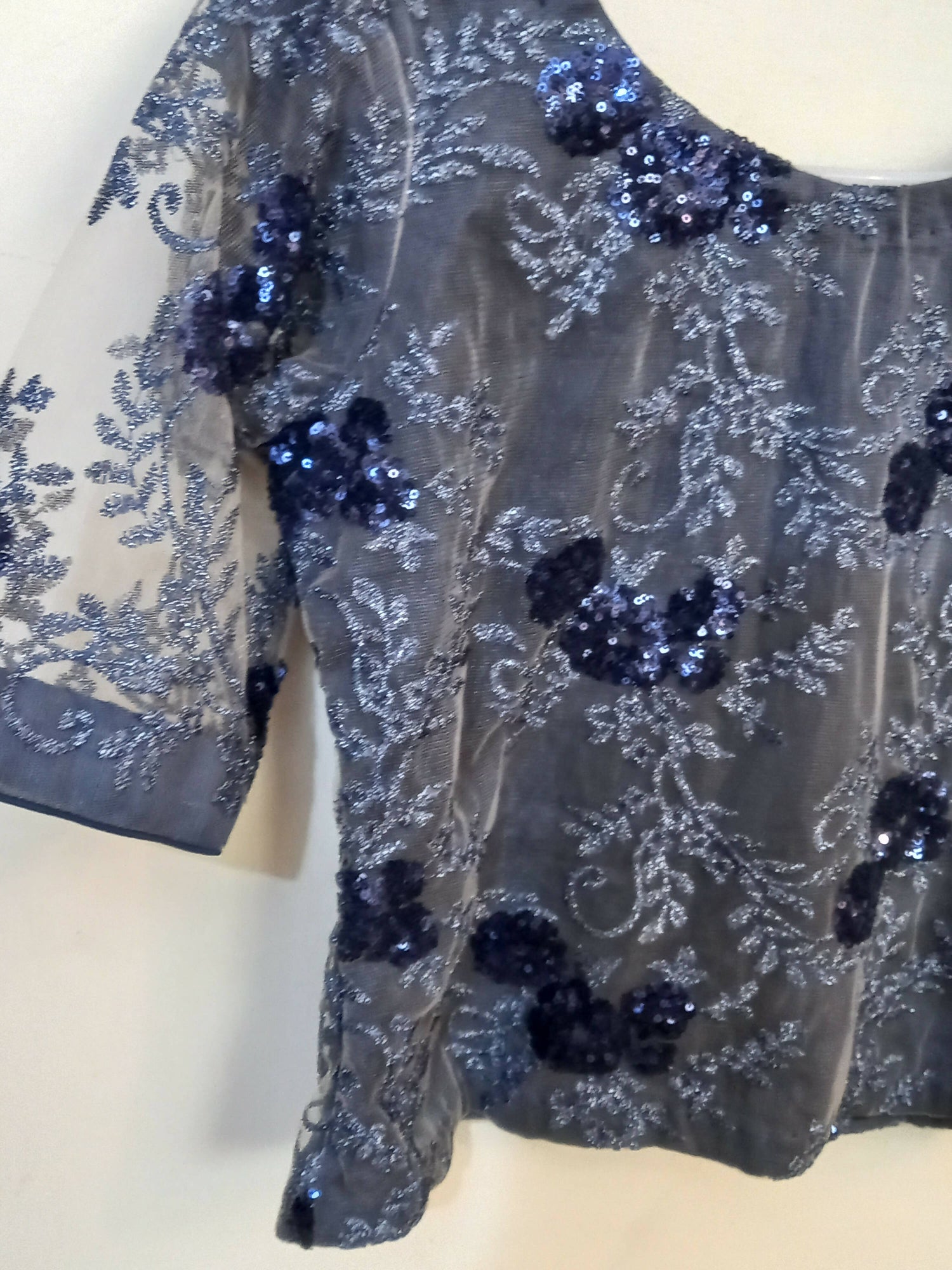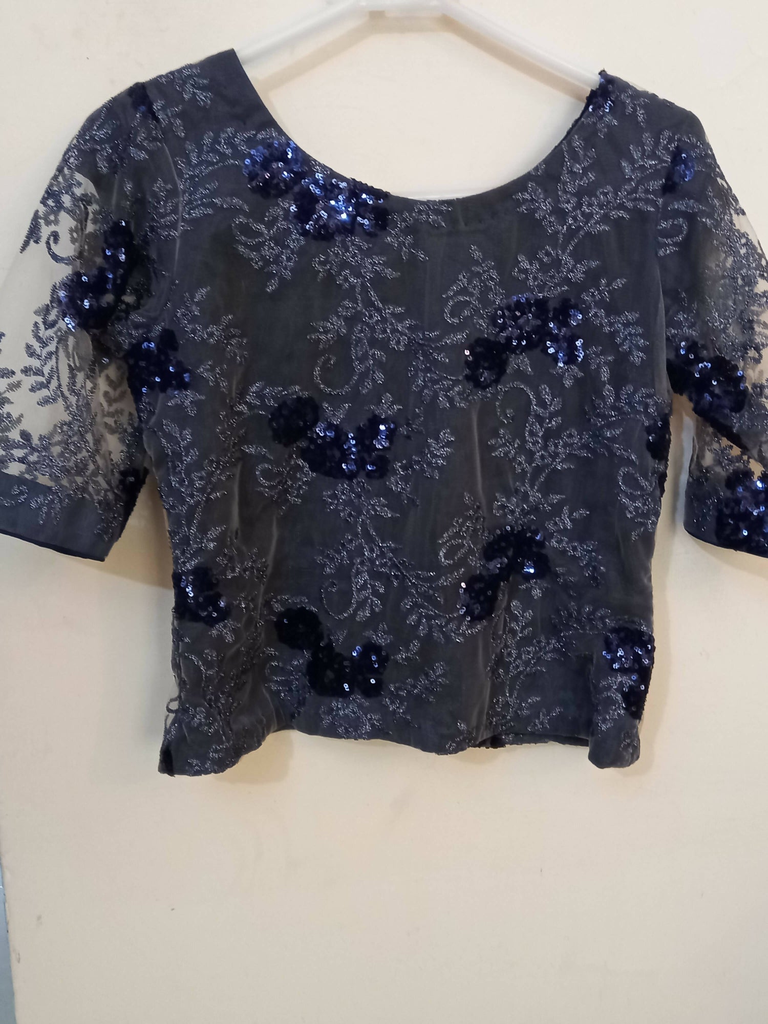 | MATERIAL & MEASUREMENT | net blouse with raw silk peti coat colour royal blue blouse length 18.5 chest 18 shoulder 13 sleeves length 11.5 peti coat length 36 waist one side 21 |
