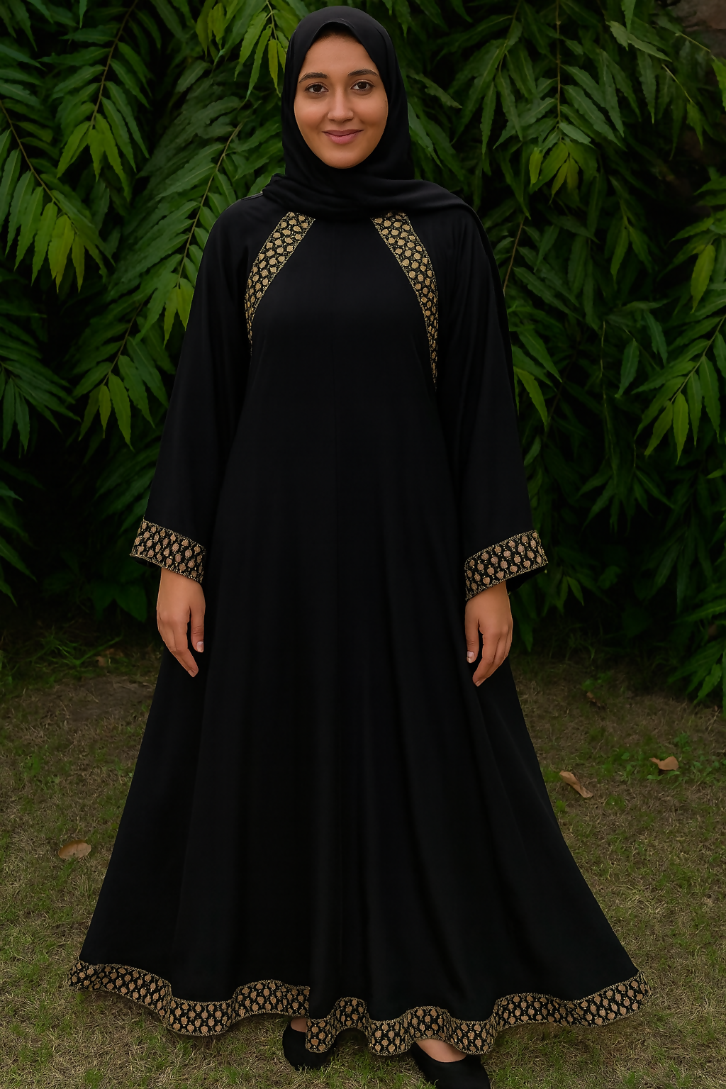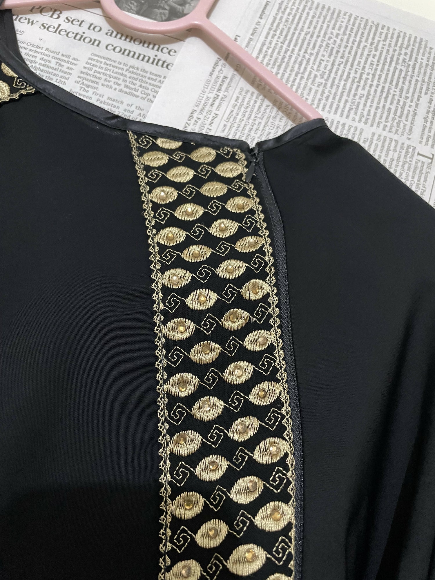 Black Saudi Maxi Style Abaya | Women Accessories | Medium | New - Golden / Brand new / New is backordered and will ship as soon as it is back in stock.