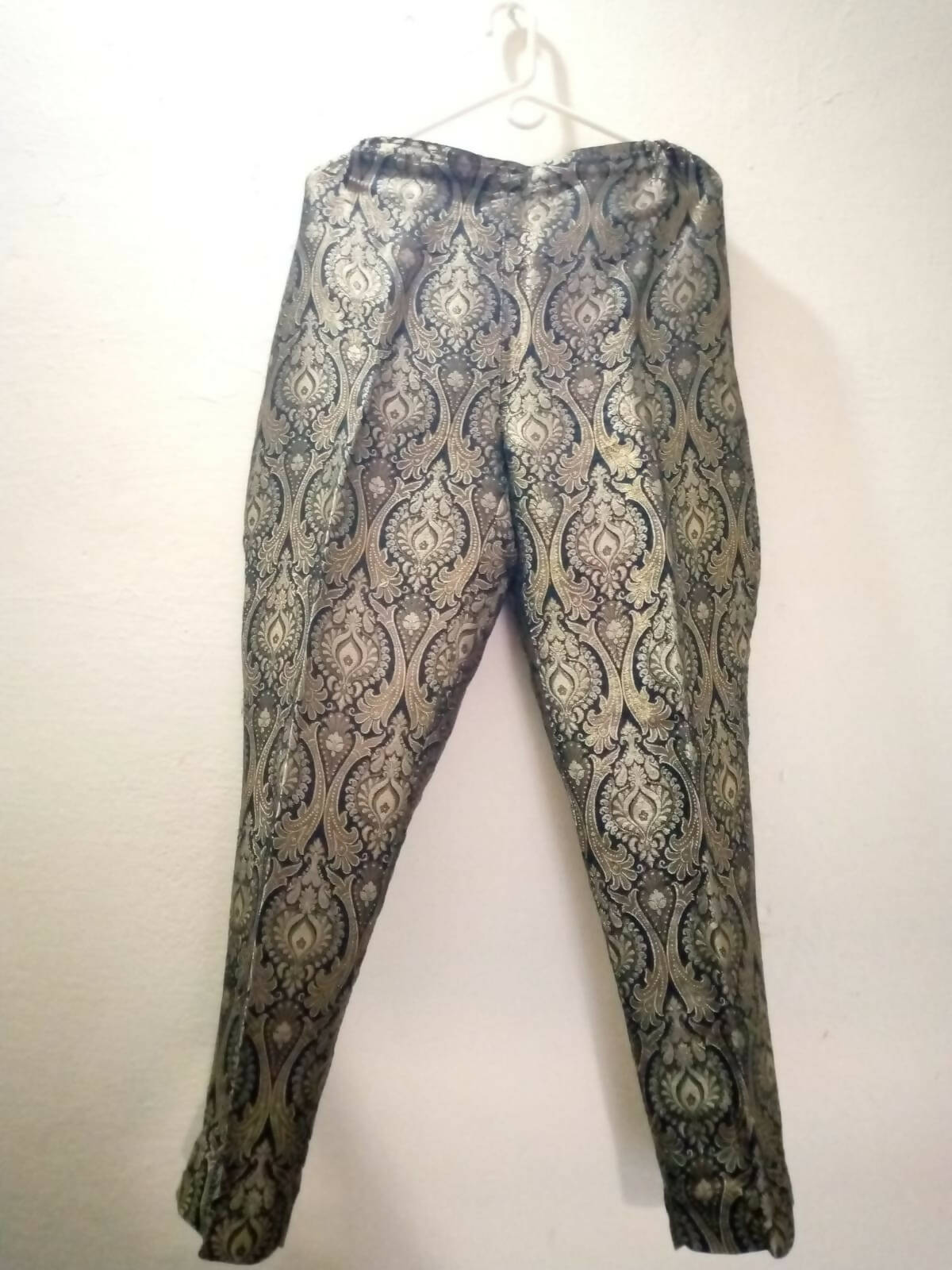 heavy work done, small tassels on sleeves and back on a shirt, work done on sleeves, neckline, and border