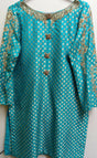 | MATERIAL & MEASUREMENT | Pure Jamawar Silk Shirt with kora work Dupatta China Silk Trouser Pure Silk Shirt Length: 35 Sleeves Length: 20 Chest: 19.5 Trouser Length: 36 Will be delivered after dry Cleaning. |