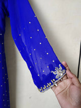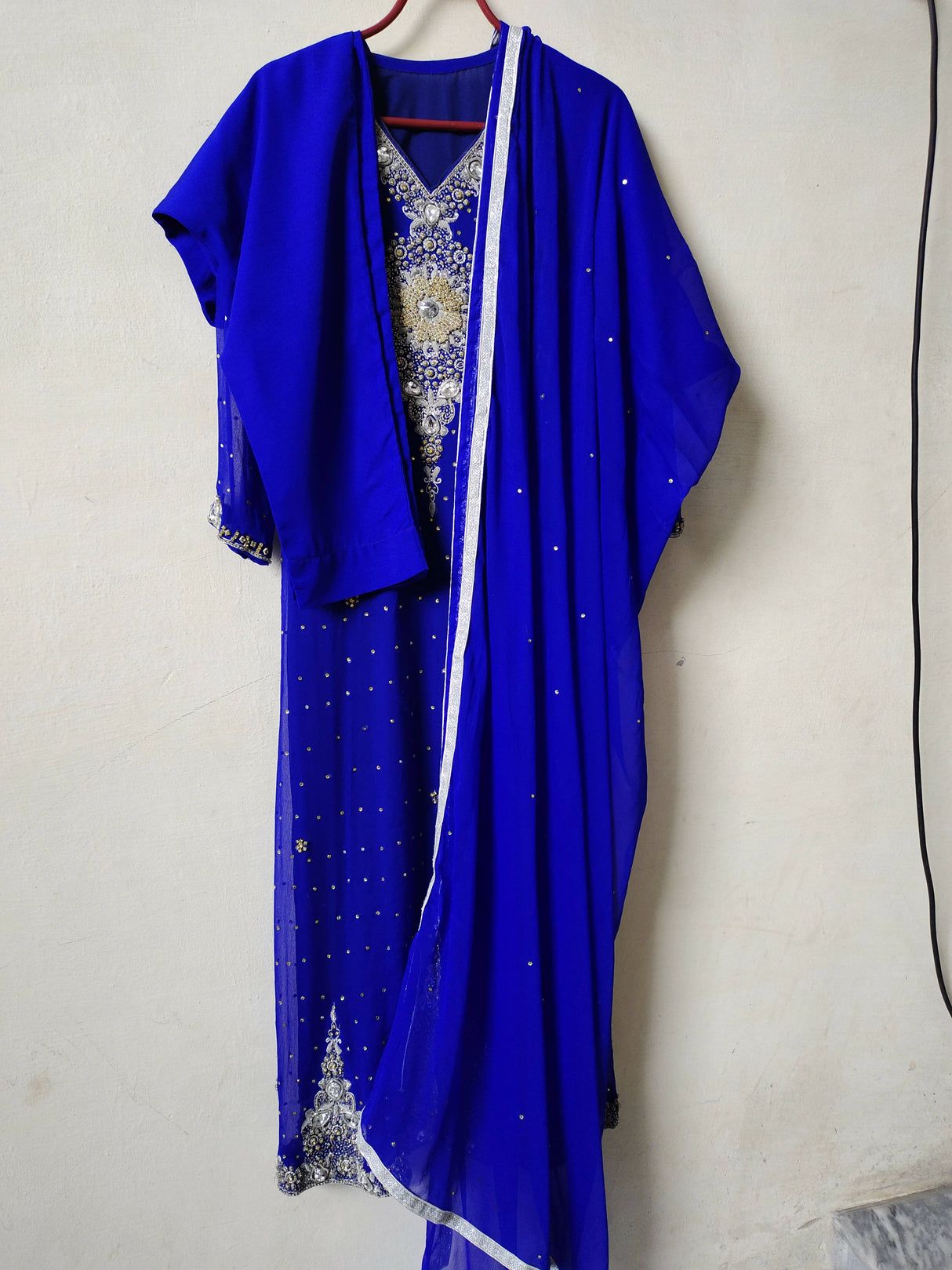 | MATERIAL & MEASUREMENT | Fabric...pure Color: Blue Shirt Length: 48"long shirt Chest: 16" Arm length: 18" Capri length: 37" Duppta full long. |