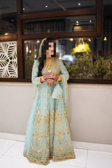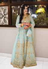 | MATERIAL & MEASUREMENT | Heavy Zari and Stone Work. Measurements: Chest: 22-23 inch Shoulder: 14-15 inch Sleeve Length: 3 Quarter Maxi length: 60 inch Dupatta Length: 3.5 metre |