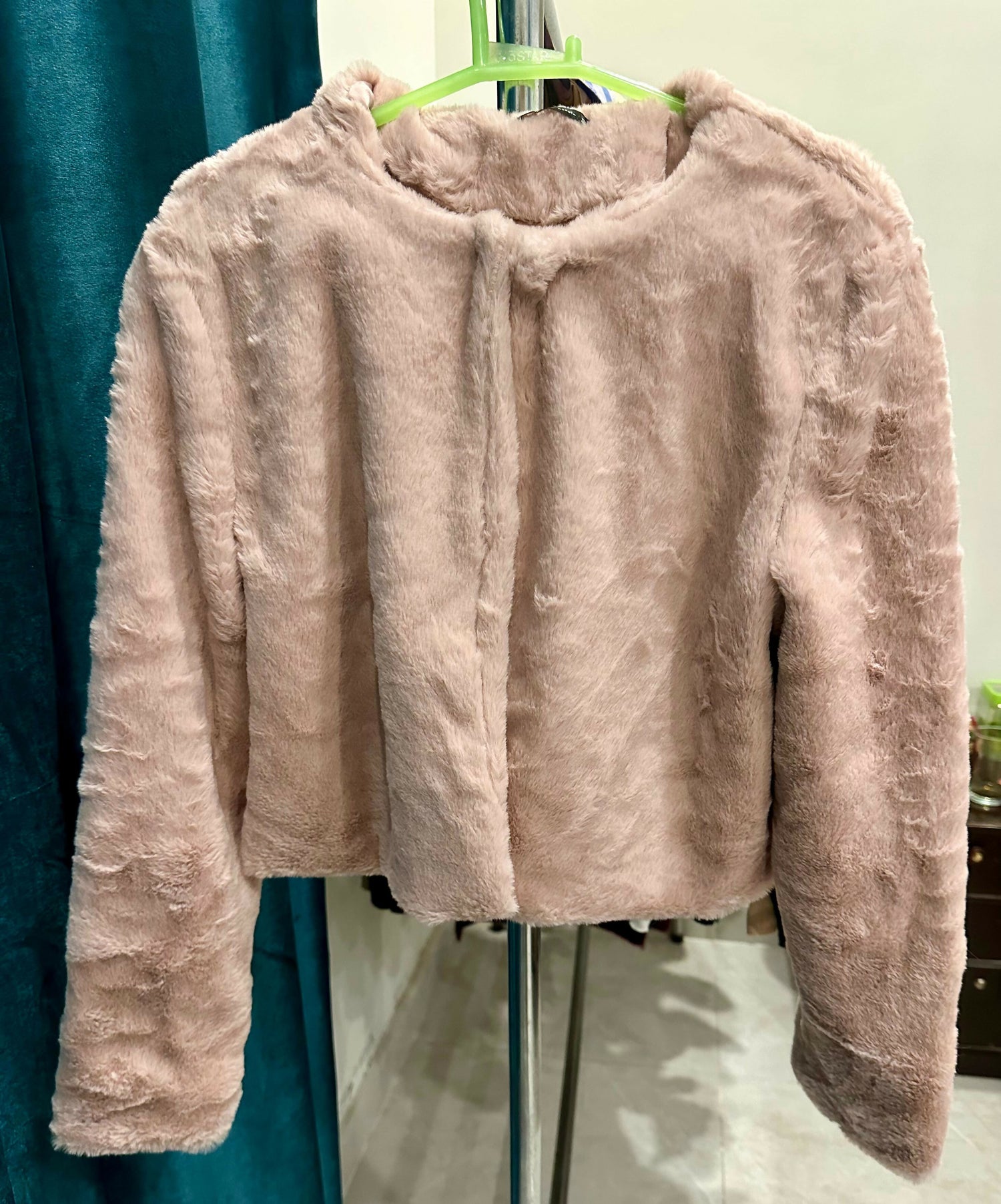 | MATERIAL & MEASUREMENT | Size: Small Length: 18" Waist: 18.5" Shoulder: 15.5" Sleeve length: 22" Fabric: fur |
