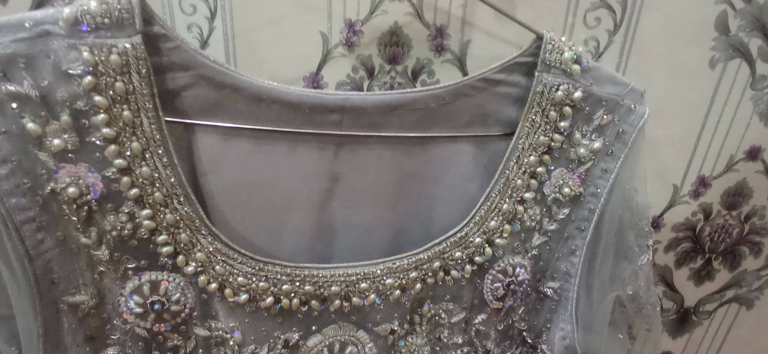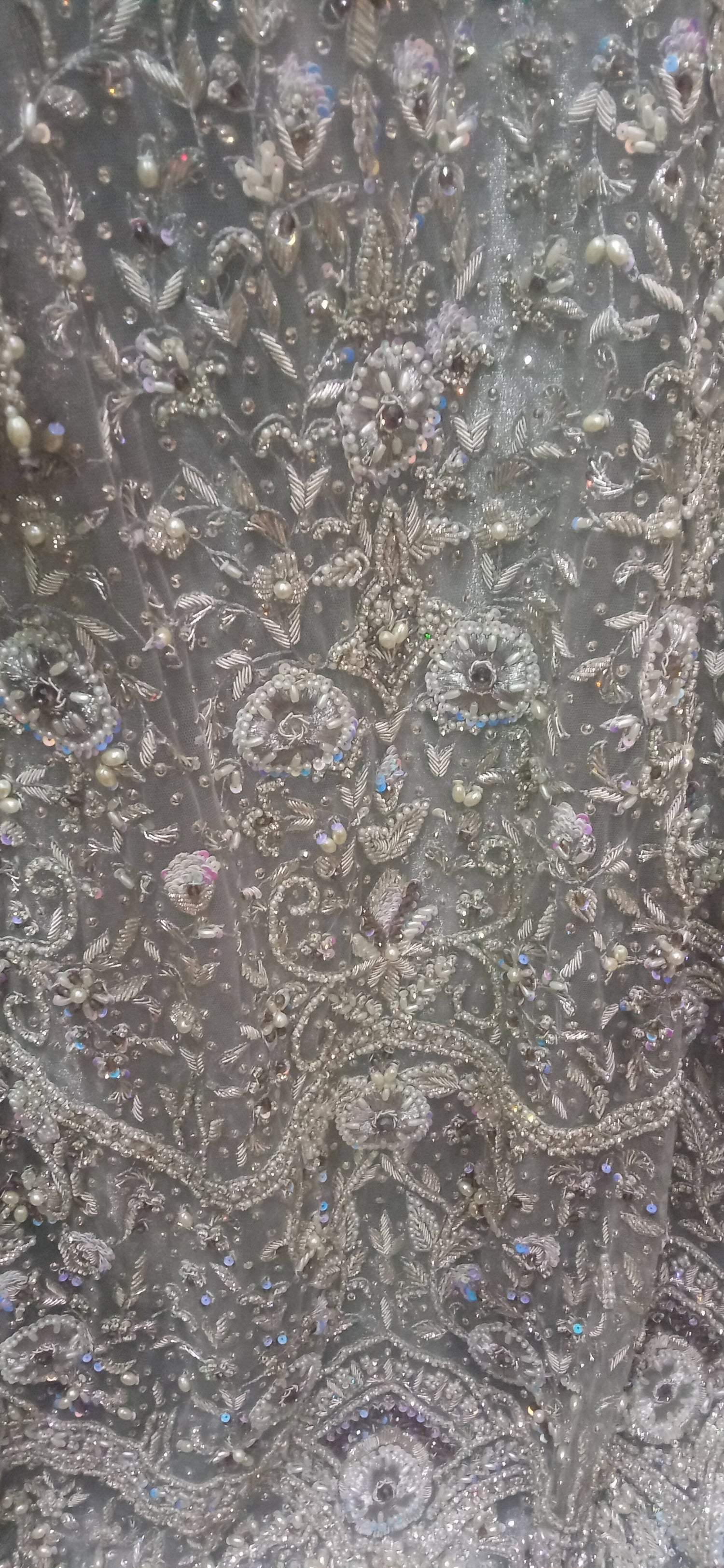 Work consists of embroidery, moti nd sitara work nd moti tassels on sleeves nd on bottom