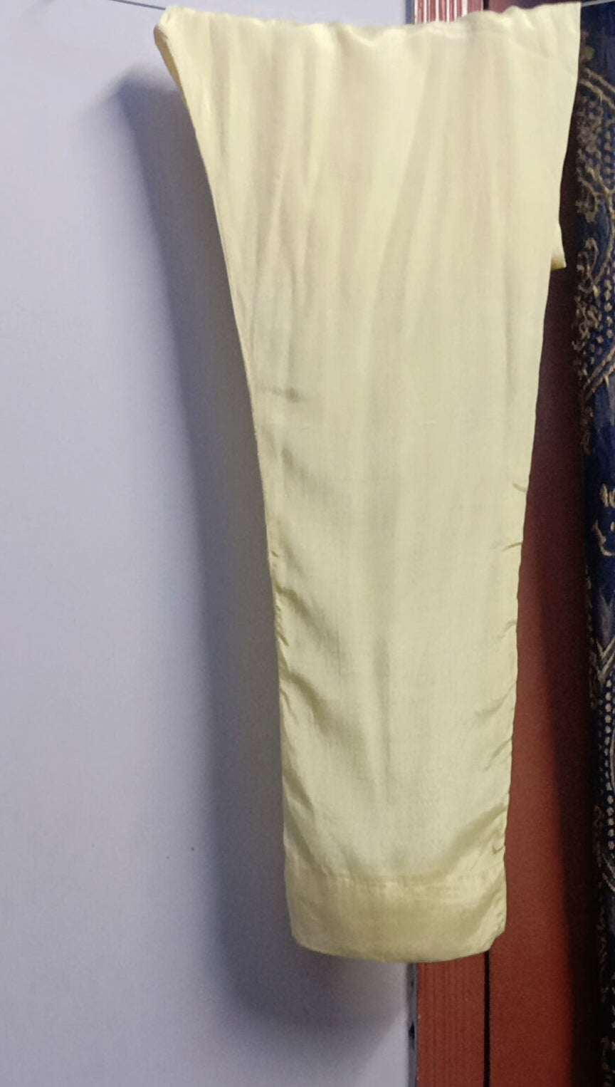 | MATERIAL & MEASUREMENT | Material: Soft Organza with cotton inner Measurements: Chest: 20 Shoulder: 14.5 Sleeve Length: 20 Shirt Length: 32 Trouser Length.. 38.5 |