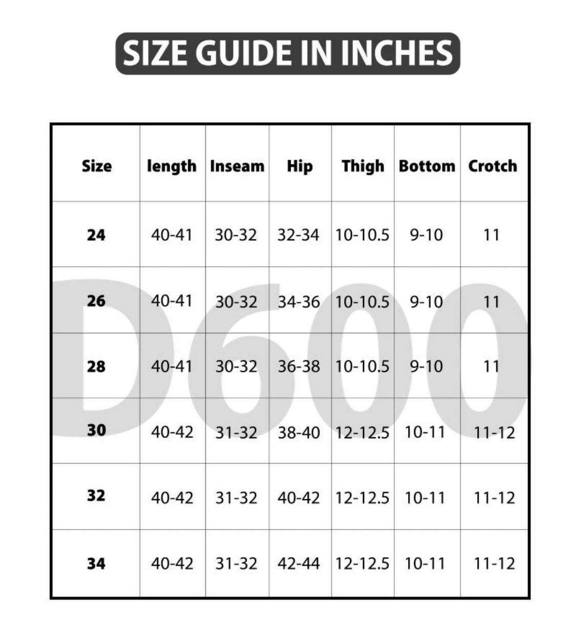 | MATERIAL & MEASUREMENT | Measurements: Length 40-41 inseam:30-32 hip: 34-36 thigh : 10-10.5 bottom :9-10 croach :11 |