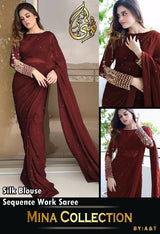 Silk Sleeves *Sequence Embroidery Blouse* With Pettycoat And Pearls Attached Sareee