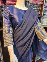 | MATERIAL & MEASUREMENT | Silk Sleeves *Sequence Embroidery Blouse* With Pearls Attached Sareee Size Mesurement Blouse Chest 20 Blouse Length 17 Blouse Stuff *Shamose Silk* Pearls Attached 7 Yards Saree Stuff Chiffon Blue Black Peacockblue Color available |
