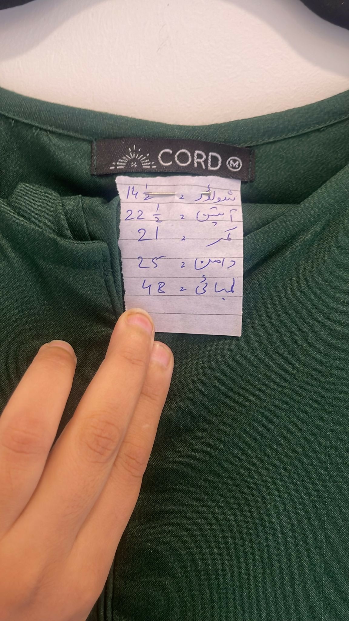 | MATERIAL & MEASUREMENT | Measurements Shoulder 14.5 Sleeves 22.5 Waist 21 Daman 25 Length 48 |