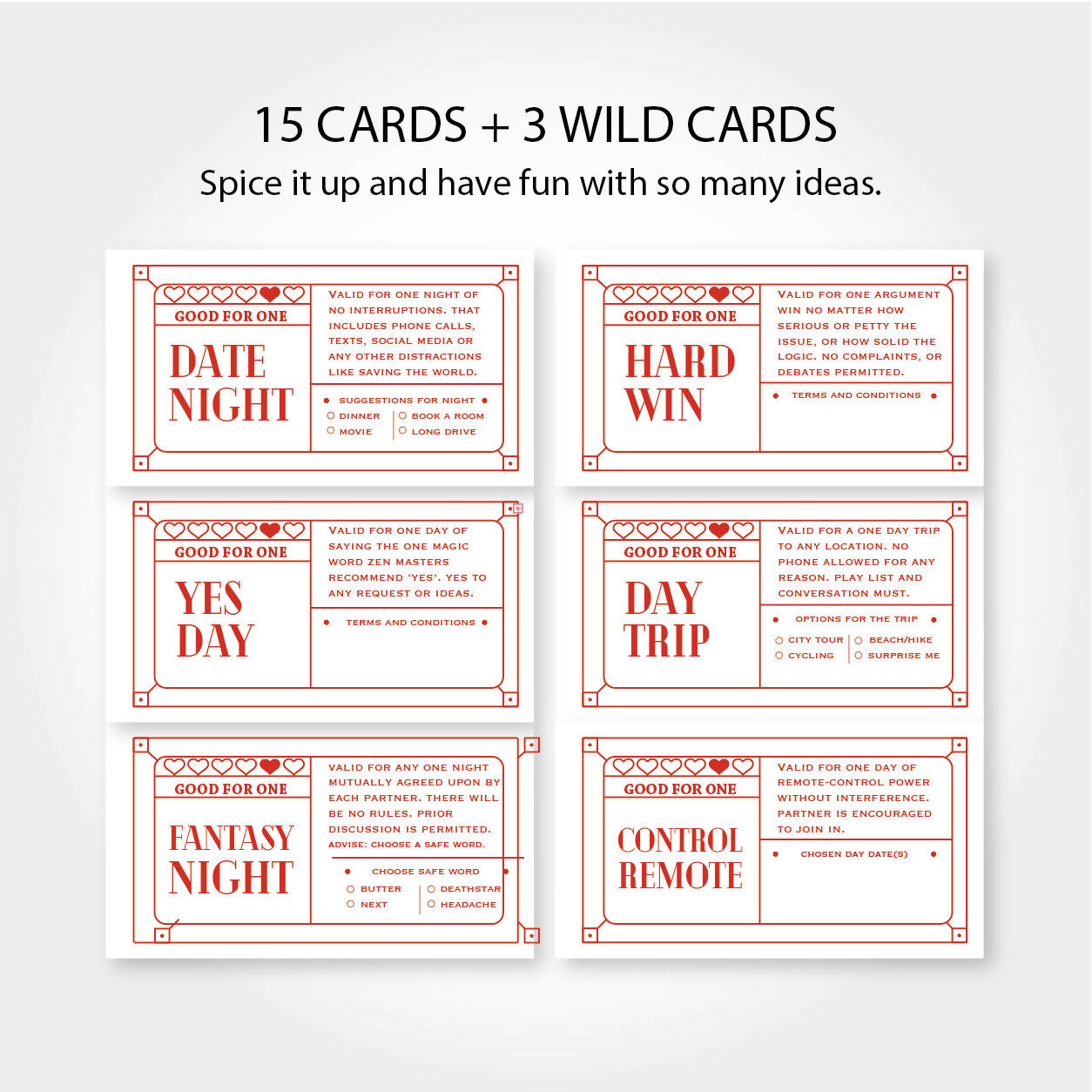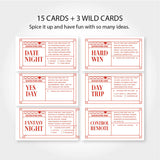 A perfect gift for your husband or wife! An activity booklet filled with 18 creative ideas that are fun, romantic and unusual. Includes estimated time and cost, along with chat topics on every card. Plus, some create-your-own idea cards.