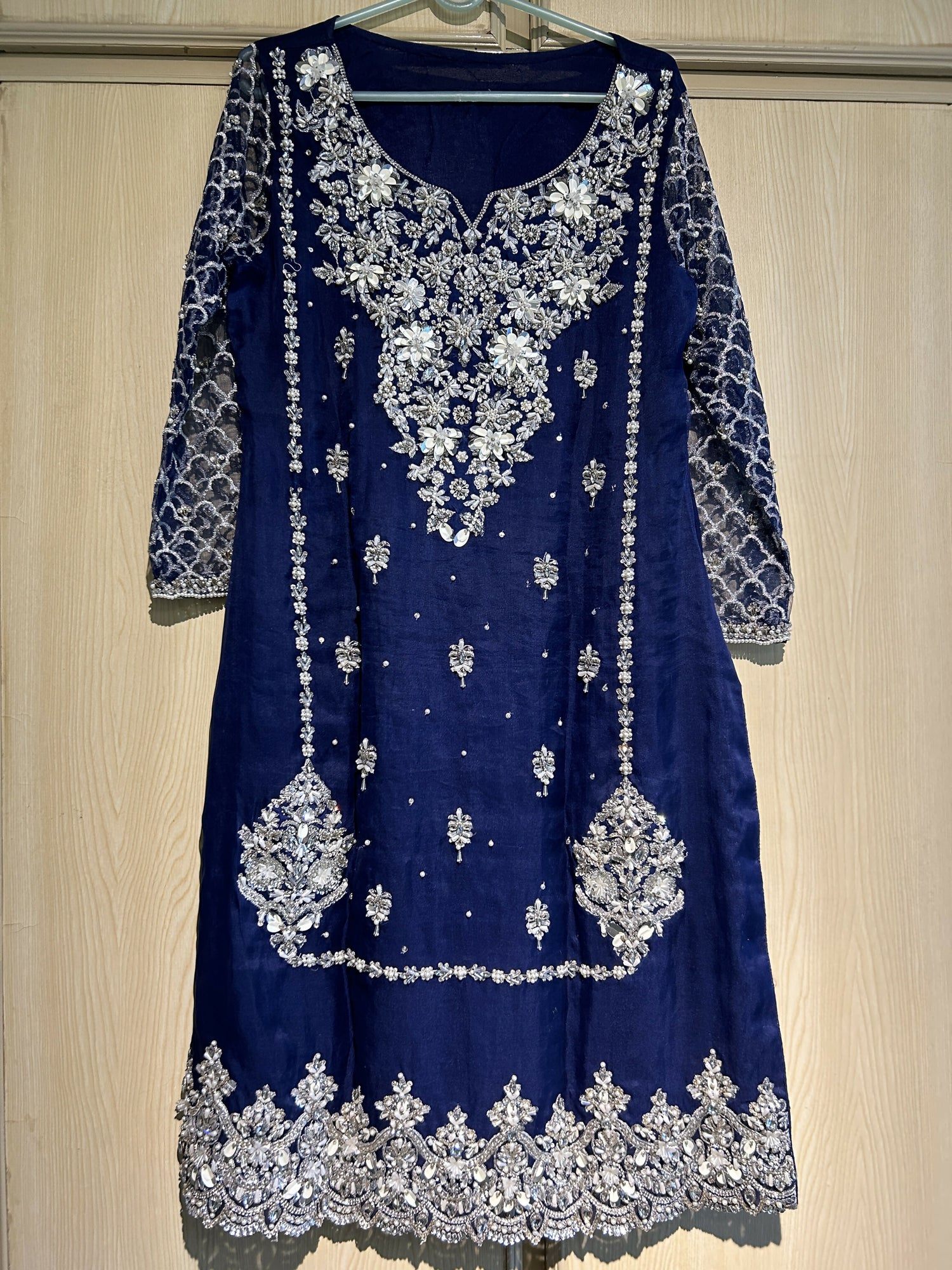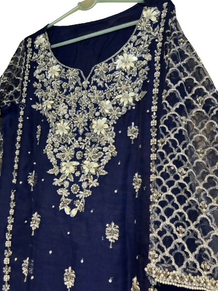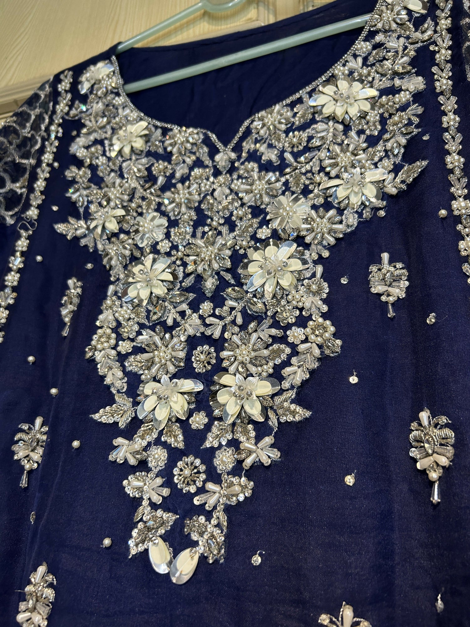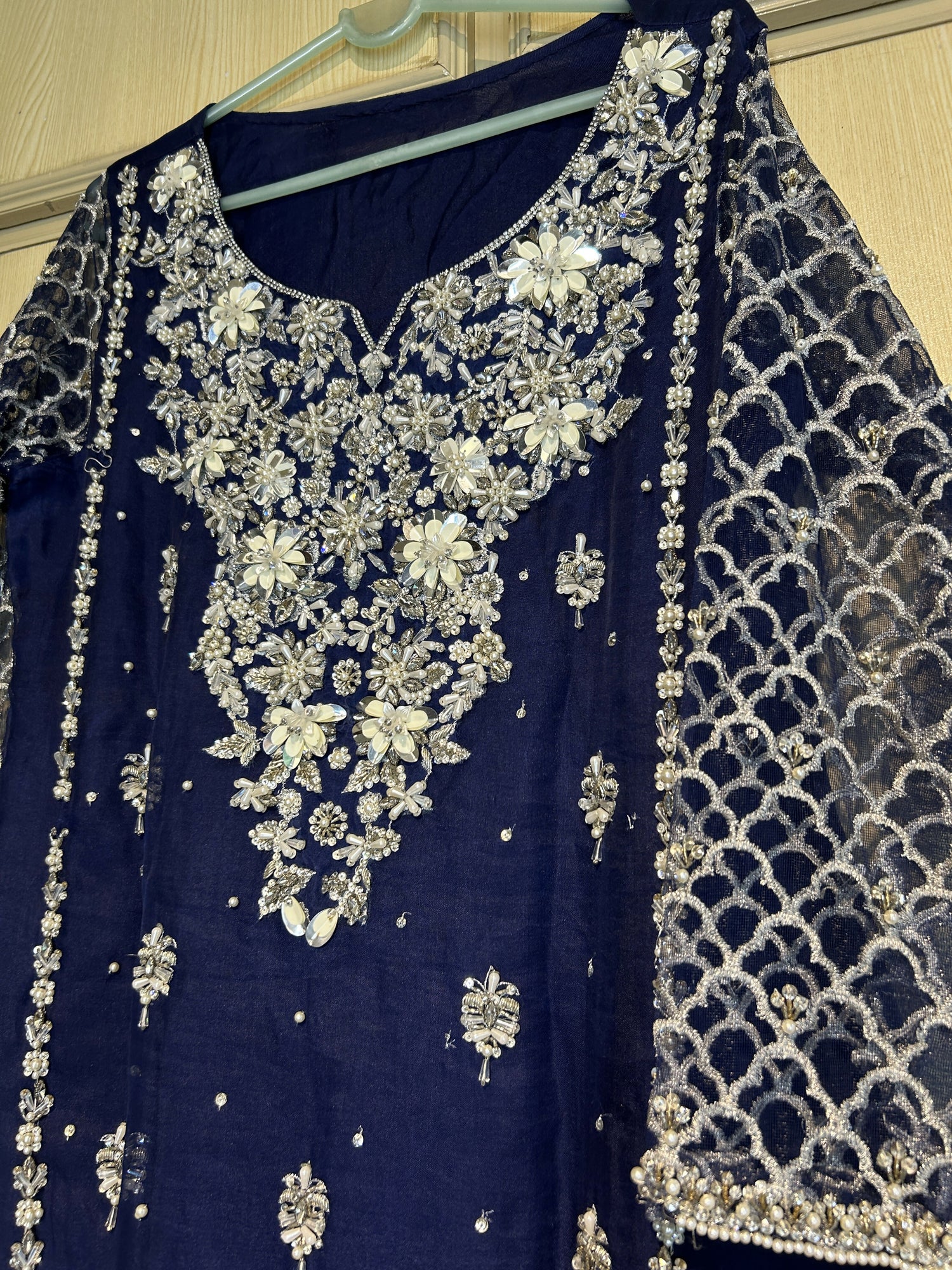 Dark Blue Fancy 3 Pc Suit | Women Locally Made Formals| Medium | New