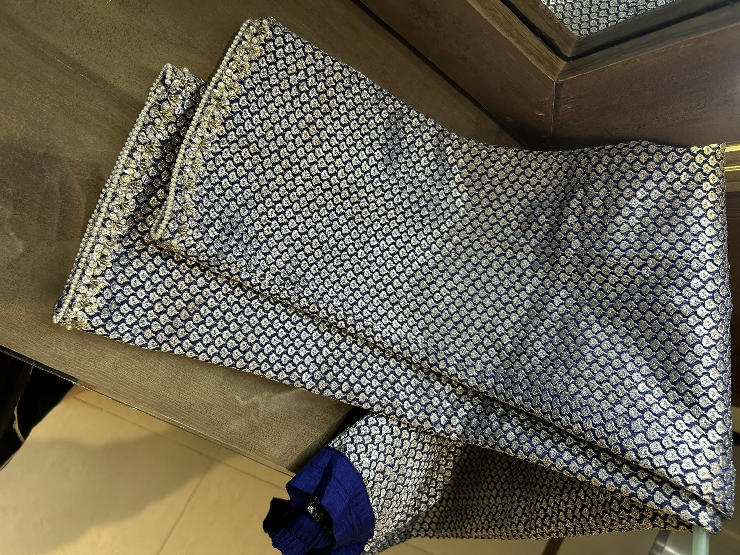 | MATERIAL & MEASUREMENT | Size: medium to large Shirt length: 40 Shoulder: 15 Sleeves length: 20 Chest: 16 Waist:16.5 Trouser length: 38 Fabric/Material: shirt: organza Dupatta: net Trouser: jamawar |