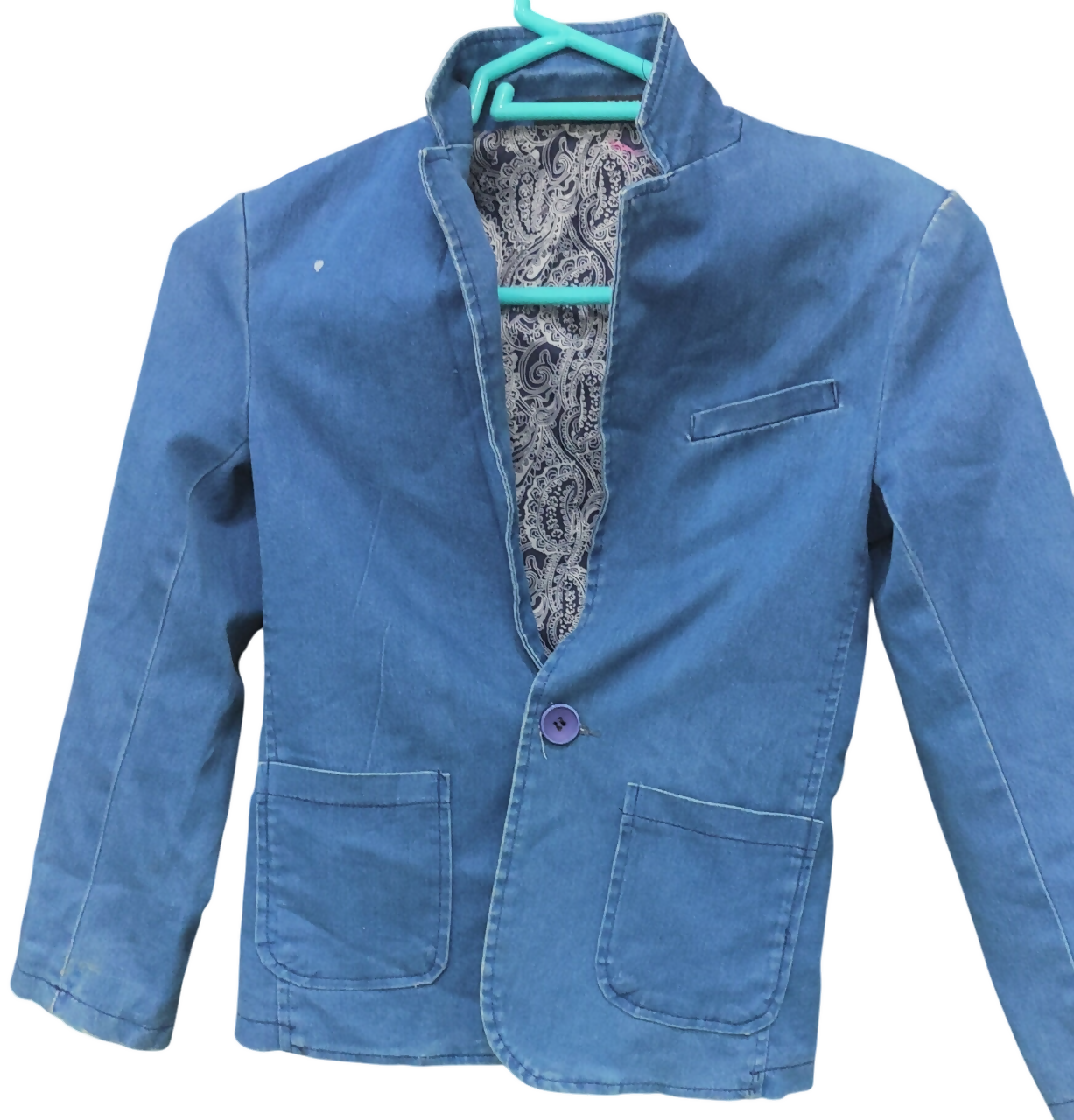 | MATERIAL & MEASUREMENT | Material cotton Denim Length 20 Chest 14 Perfect condition |
