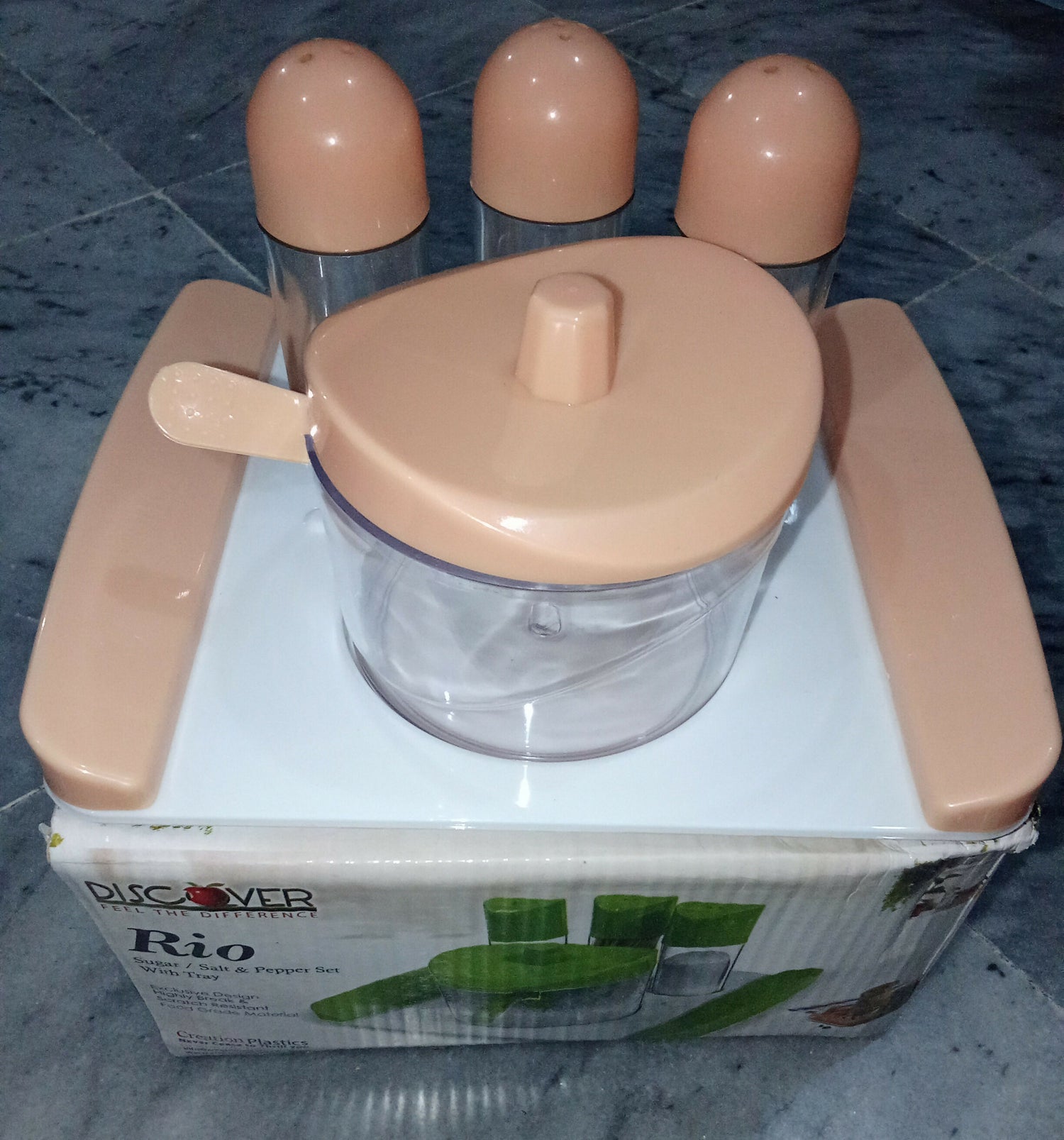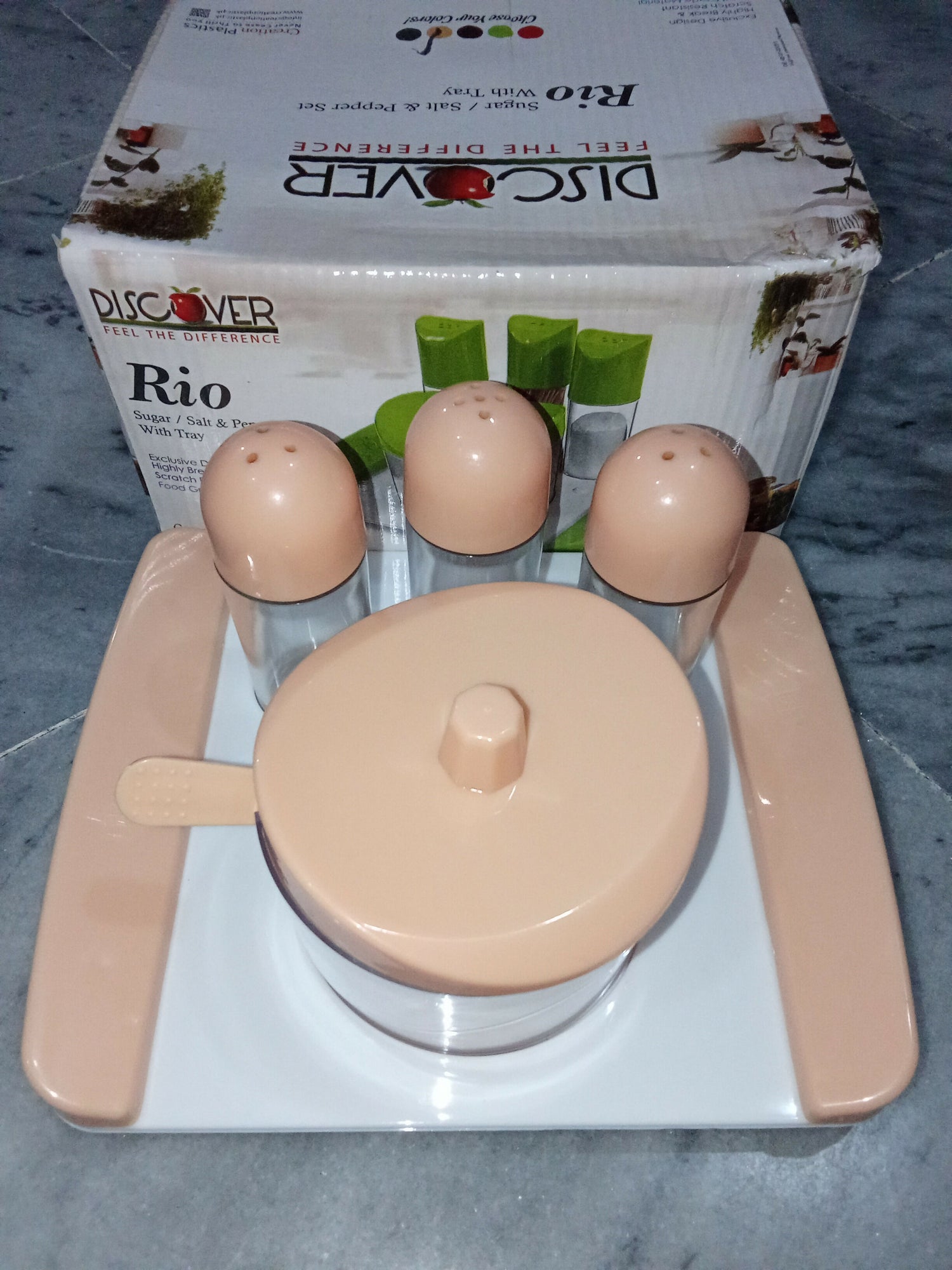 Discover | Sugar / Salt & Pepper Set With Tray | For Your Home | Kitchen | Brand New