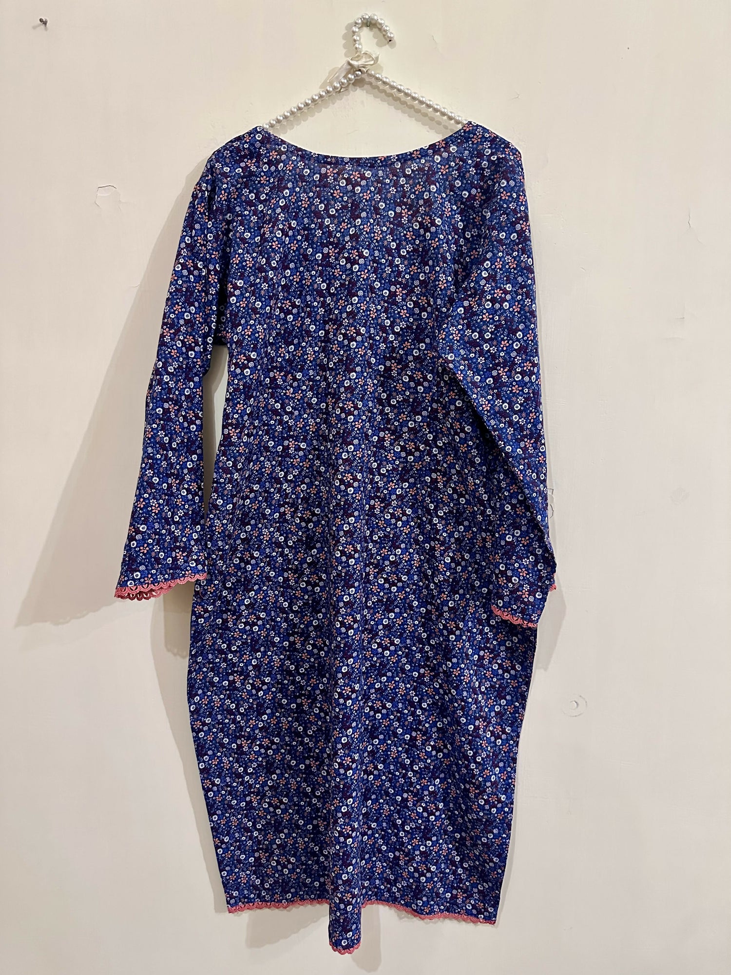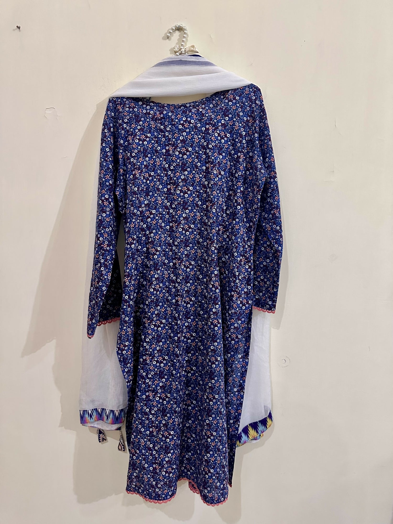 | MATERIAL & MEASUREMENT | Fabric / Material: lawn with chiffon dupatta Measurement : Chest: 20.5 Length: 40 Shoulder: 15 Trouser length: 35 |