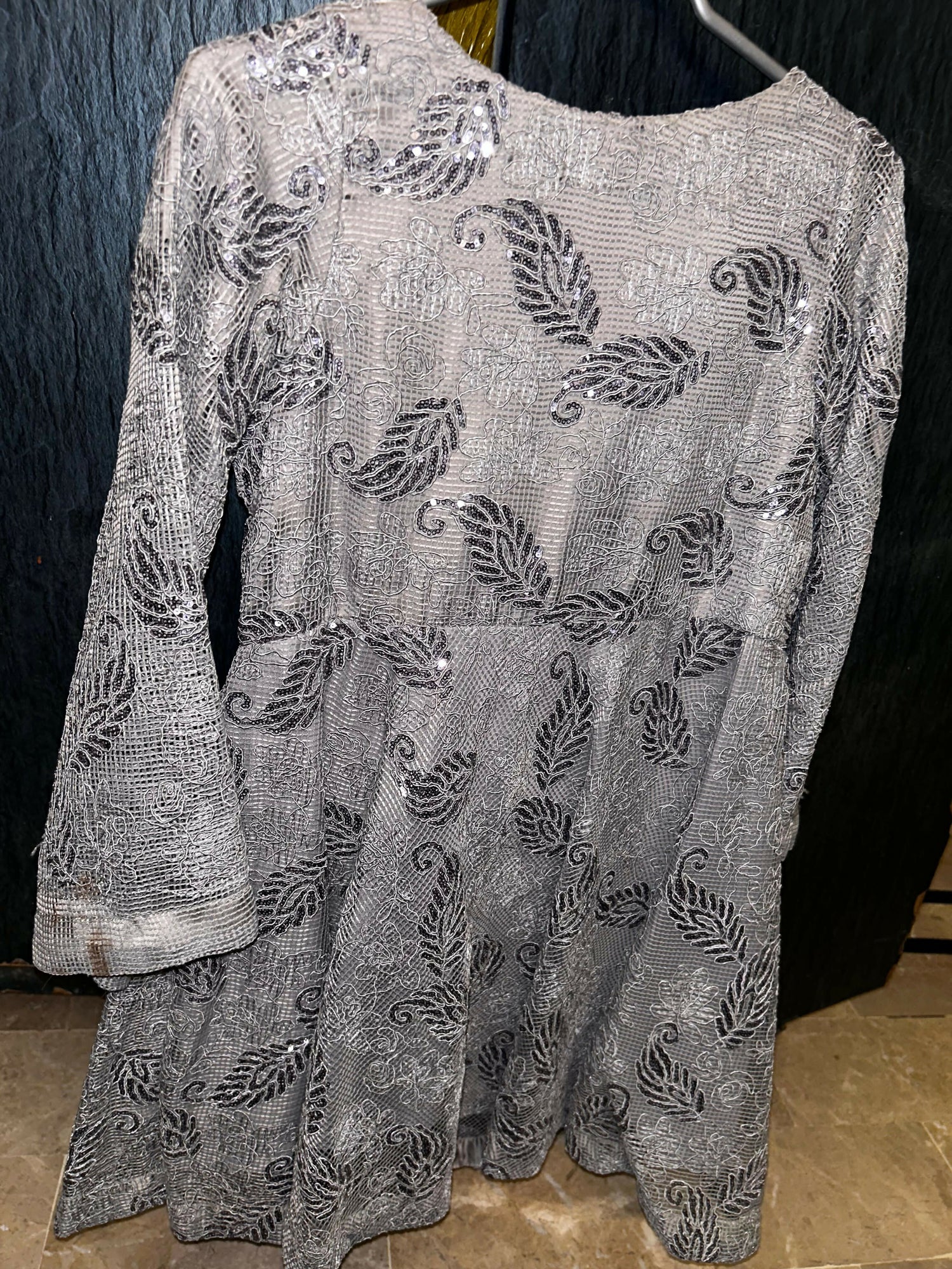 Elegant Silver Embroidered Frock Set | Women Locally Made Formals | Small | New