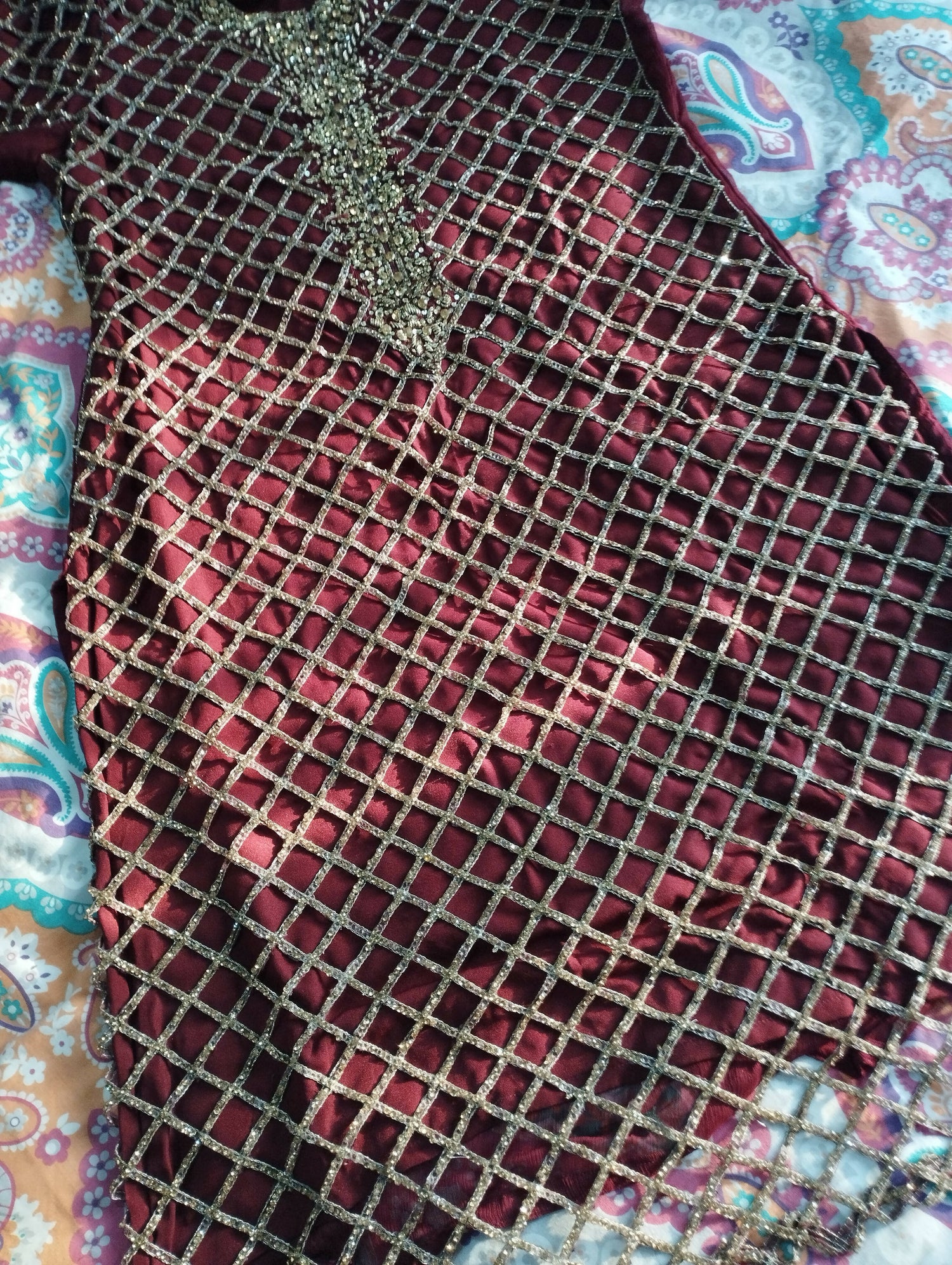 | MATERIAL & MEASUREMENT | Full embellished shirt Full embellished dupatta And trouser Measurements: Chest 21 Length 38 Shoulder 14 Trouser length 36 |