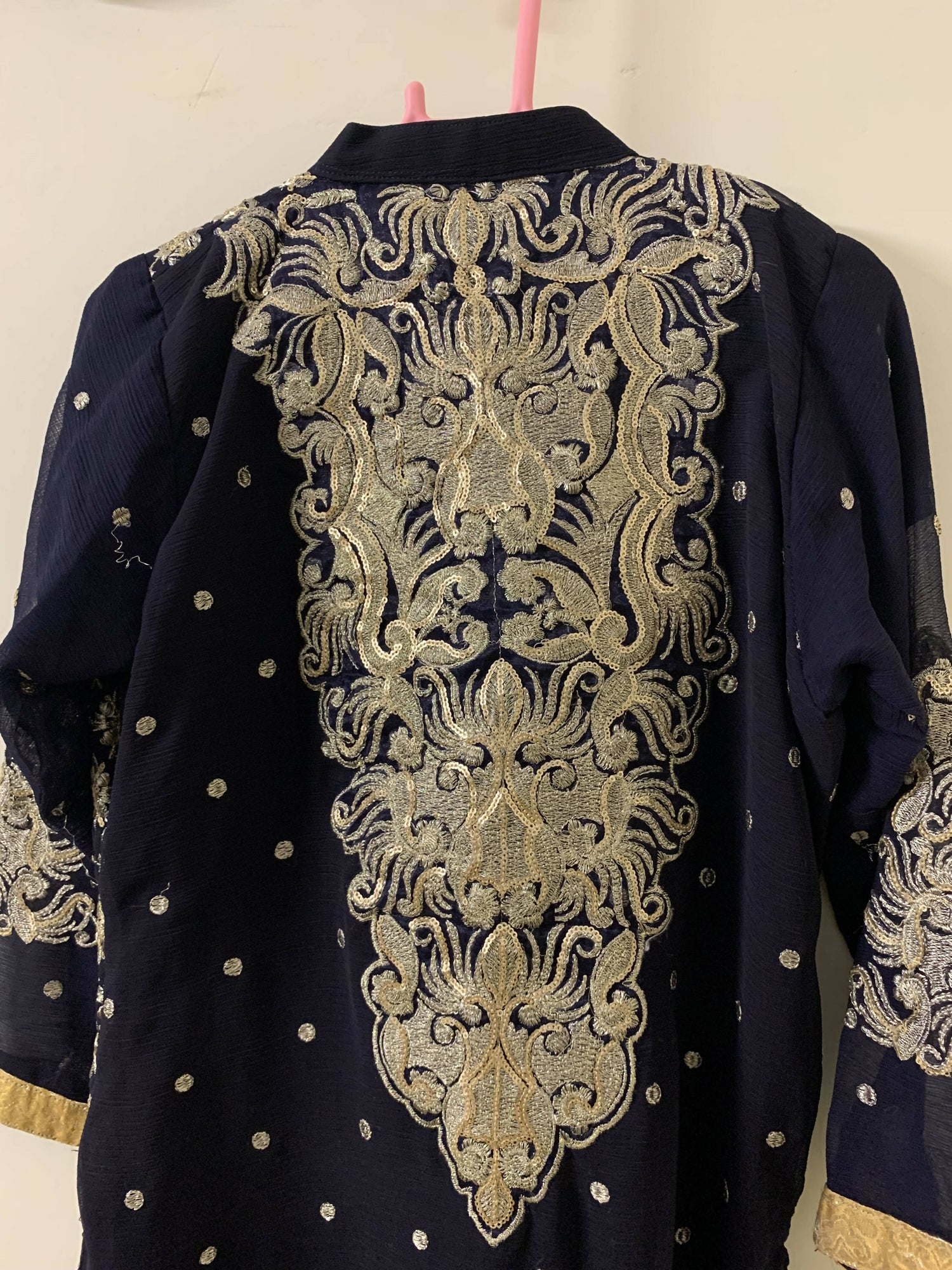 MATERIAL & MEASUREMENT Size: small Measurement: Shoulder 14 Chest 19 Length 40 Waist 17 Sleeves 19 Fabric: georgette Heavy embroided front and back