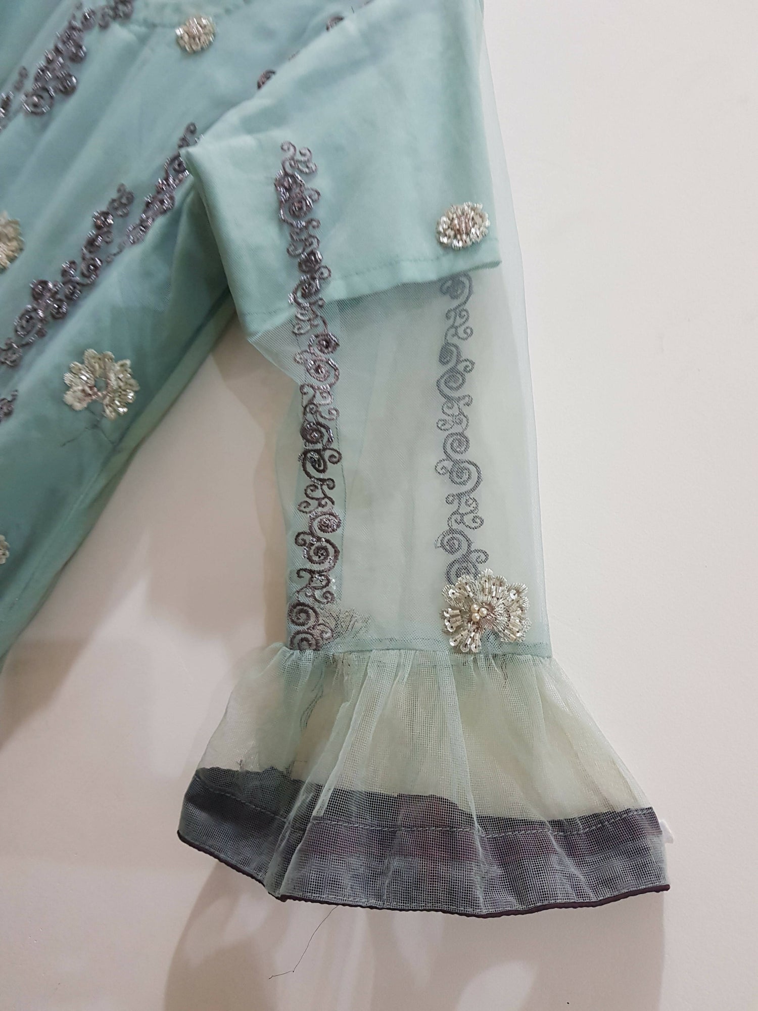 Additional details: Embroidery with moti and stonework
