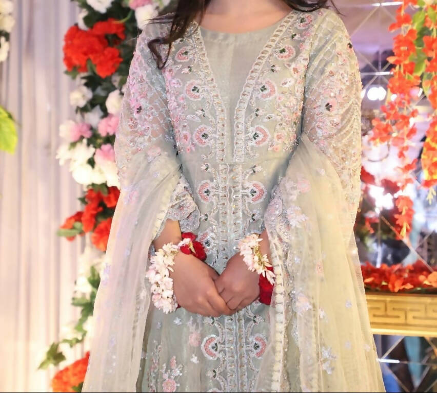 Embroidered Pista Color Long Maxi | Women Frocks & Maxis | Medium | Worn Once is backordered and will ship as soon as it is back in stock.