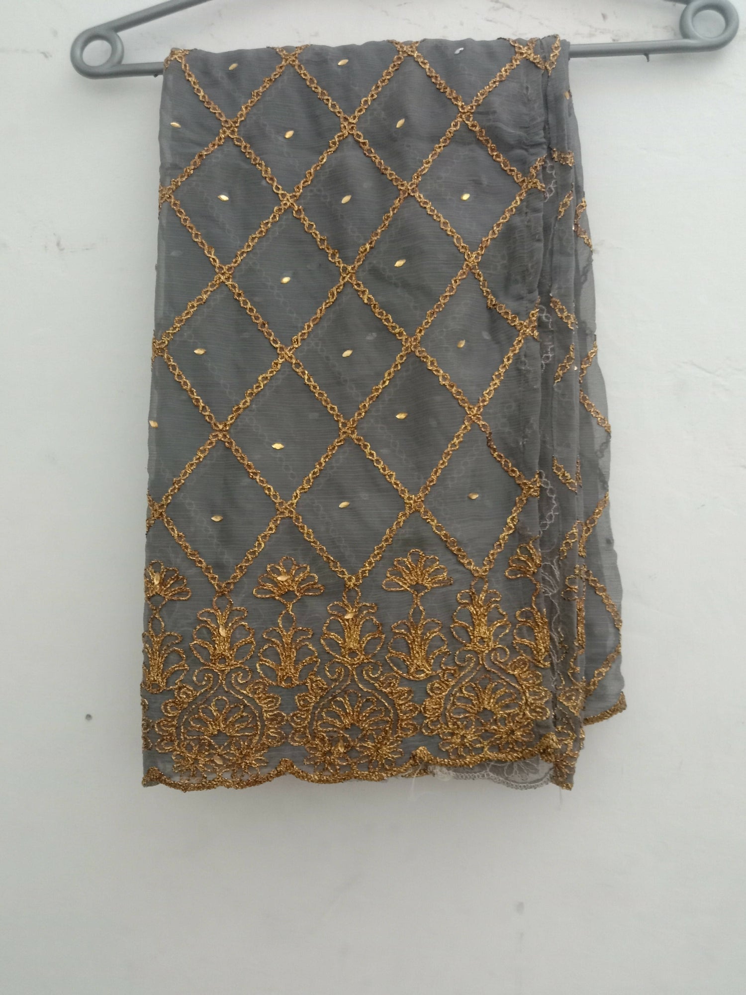 | MATERIAL & MEASUREMENT | size madium colour golden and grey once worn full embroidery dress 4 pice dress Dupatta kameez trouser with shameez kameez lenght 37 kameez width 22 chest 19 slevee lenght 17 trouser lenght 34 condition 10 | 10 |