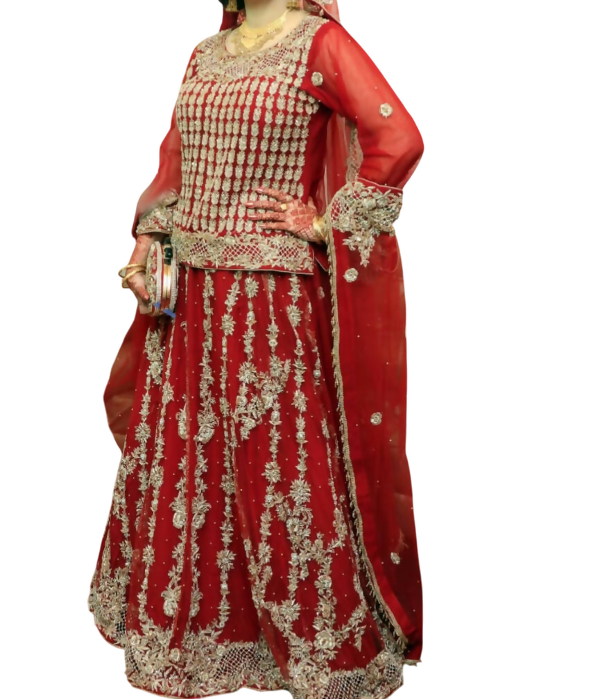 Fabric / Material: Net, lehnga with cancan,handwork dabkaa work. Dubata full boundry work, lehnga full with work