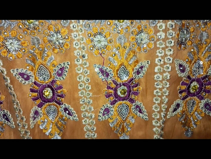MATERIAL & MEASUREMENT Maxi & Dupatta: Net material Trouser: Silk X Small Length: 54 Chest: 17 Waist: 15.5 Sleeves length: 20