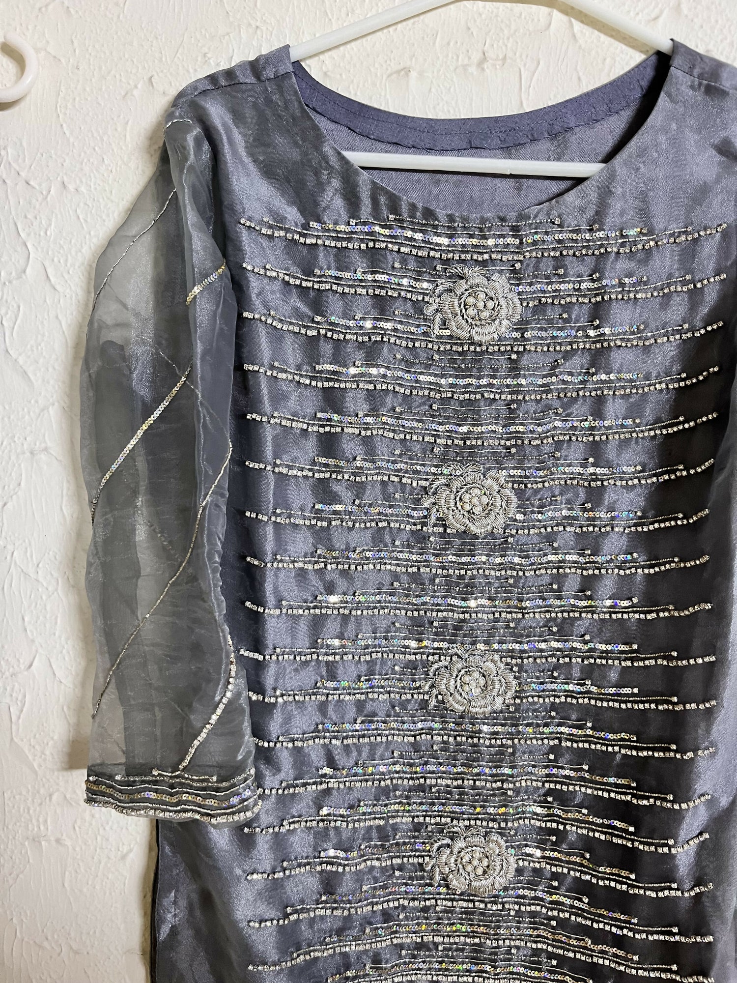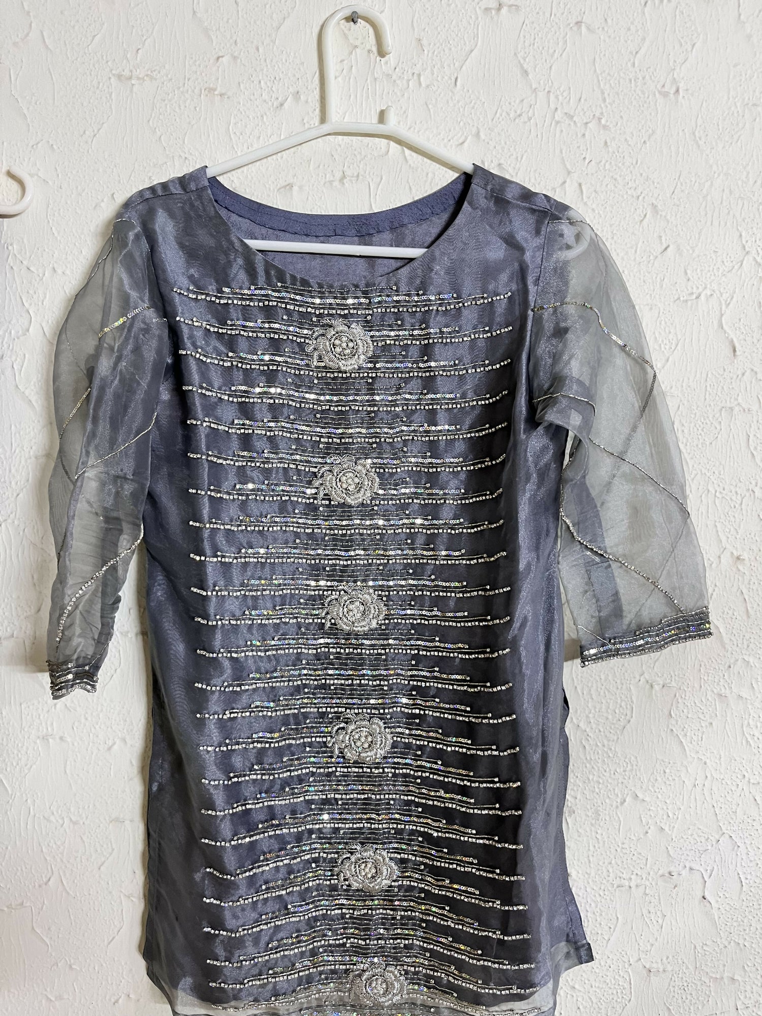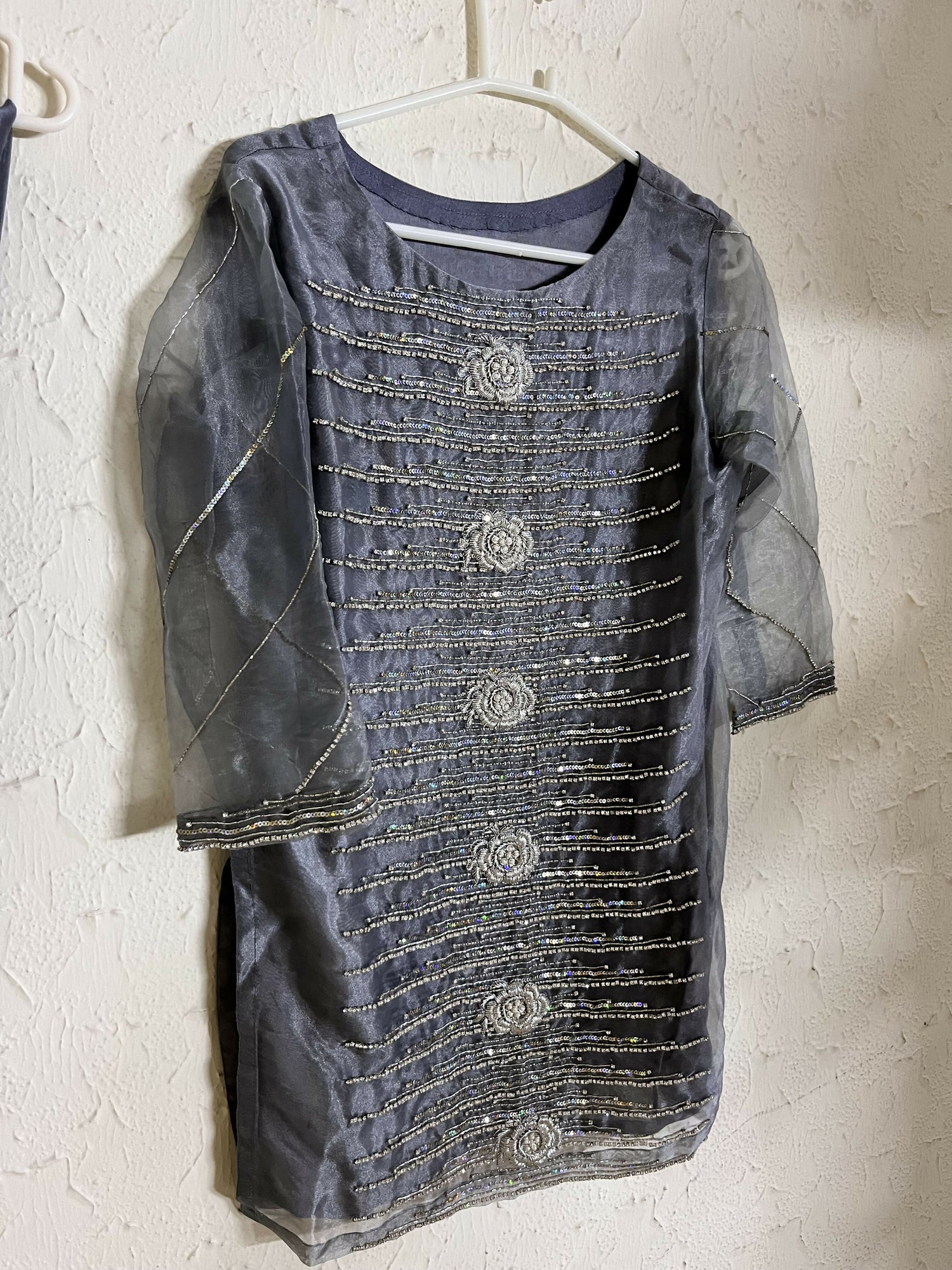 | MATERIAL & MEASUREMENT | Raw silk and organza Shirt length : 29 inches Sleeves length :16 inches Chest :18 inches |