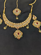 | MATERIAL & MEASUREMENT | Women fancy party/bridal wear set with red and green stones |