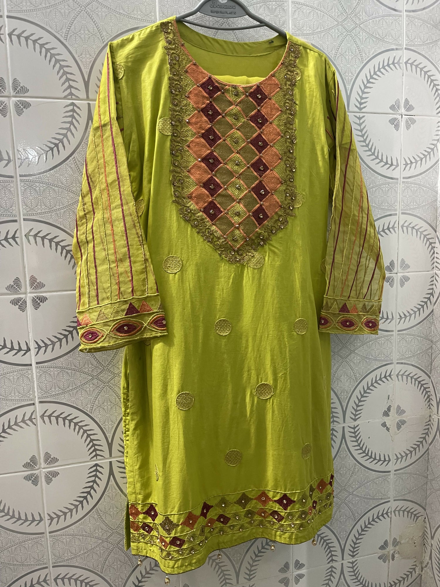 Green 2PC stitched Suit | Women Locally Made Kurta | Medium | Preloved - Meduim / Lime green is backordered and will ship as soon as it is back in stock.