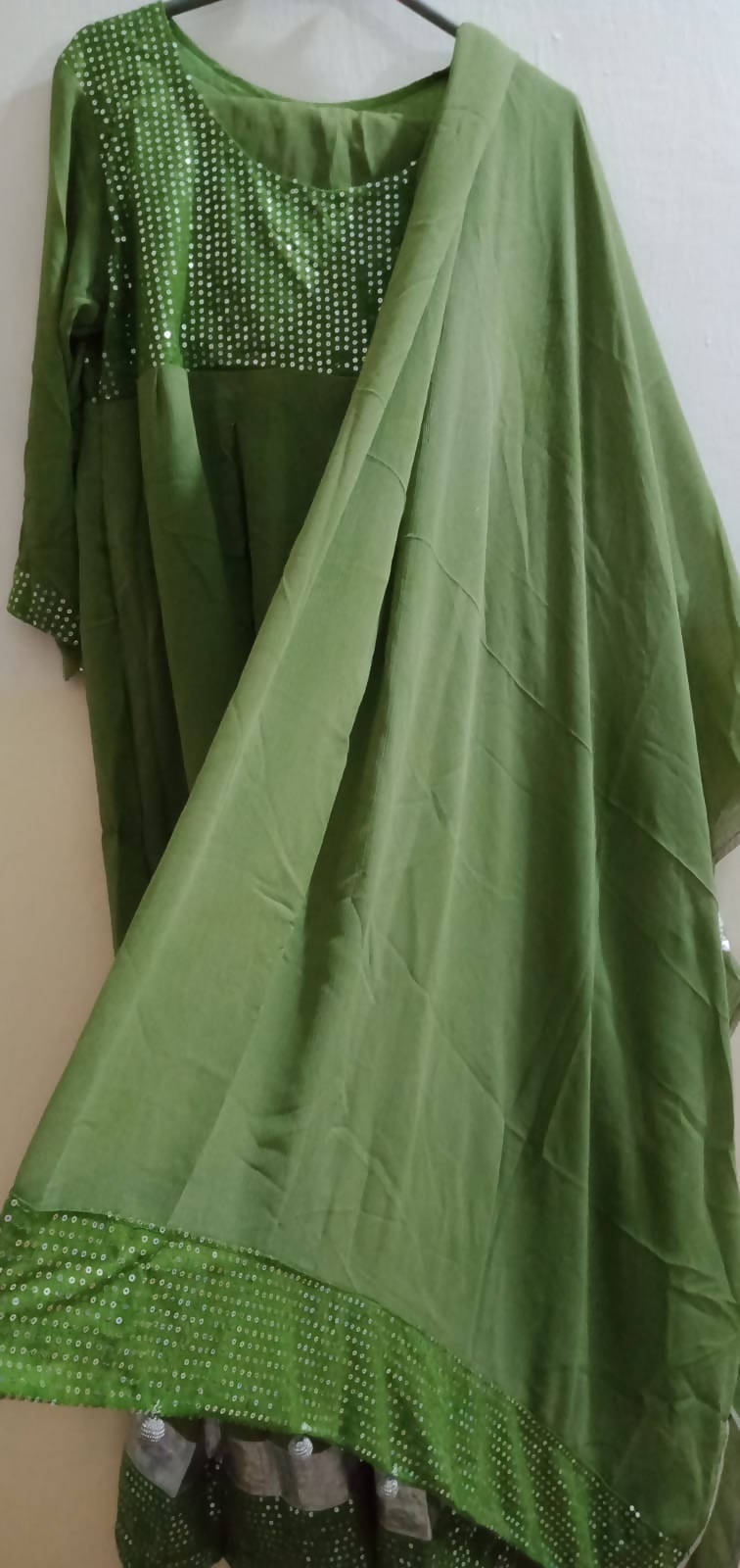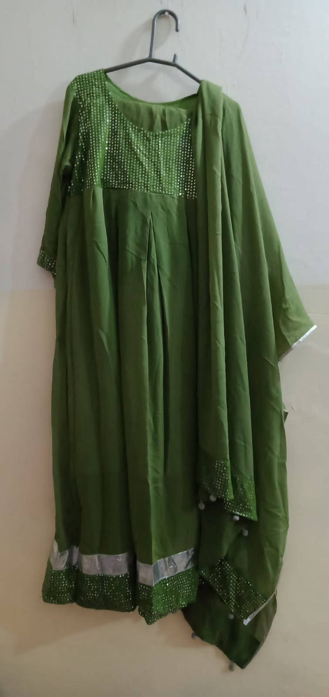 Green Crinkle Chiffon Fancy Suit | Women Locally Made Formals | Small | Preloved