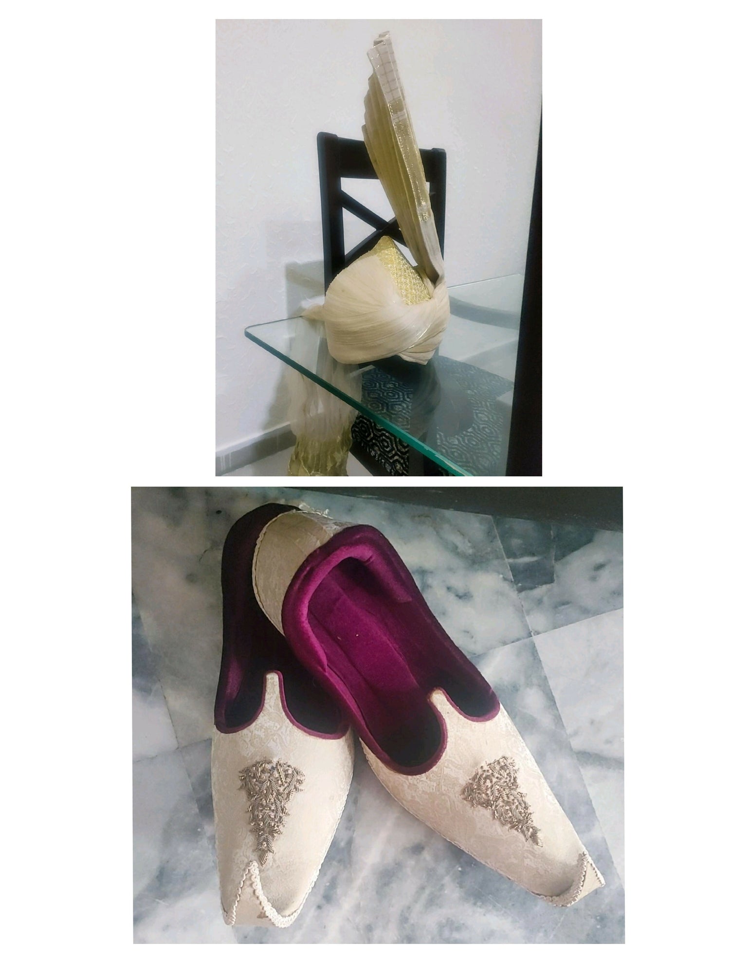 Number of pieces: 3 (1 turban, 1 pair of khussa)