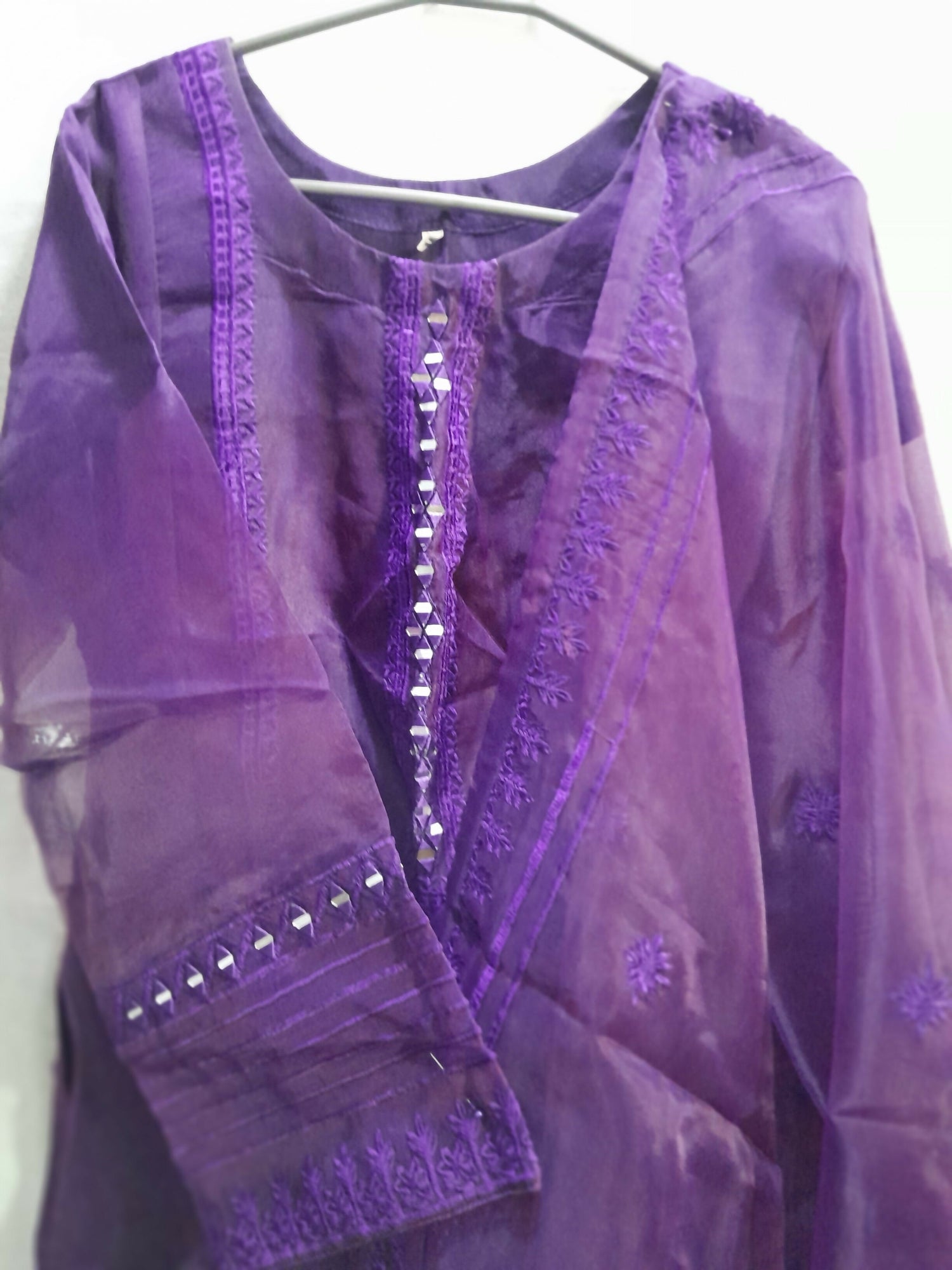 | MATERIAL & MEASUREMENT | Fabric: Lawn Colour : Red ' Green ' purple Made in : Pakistan Additional details : embroidery Original price : Rs 7000 Selling price : 5500 Used : Once Condition : 9/10 Defect : Nonemeasurement (inches) : Shoulder : 16 Chest : 22 |