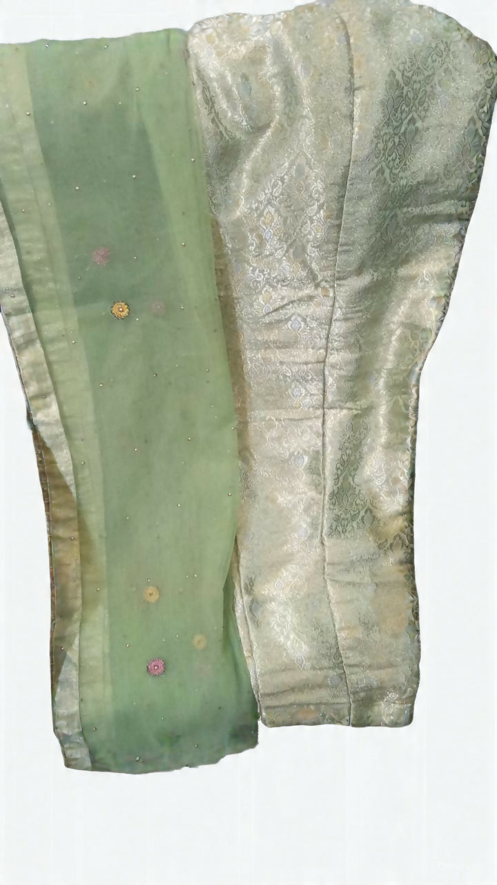 | MATERIAL & MEASUREMENT | Net Shirt + Dupatta Measurement : Jamawar trouser Chest = 21 Cm Shirt Length = 39 Shoulder = 5 cm Sleeves = 21 Cm Trouser length = 41 |