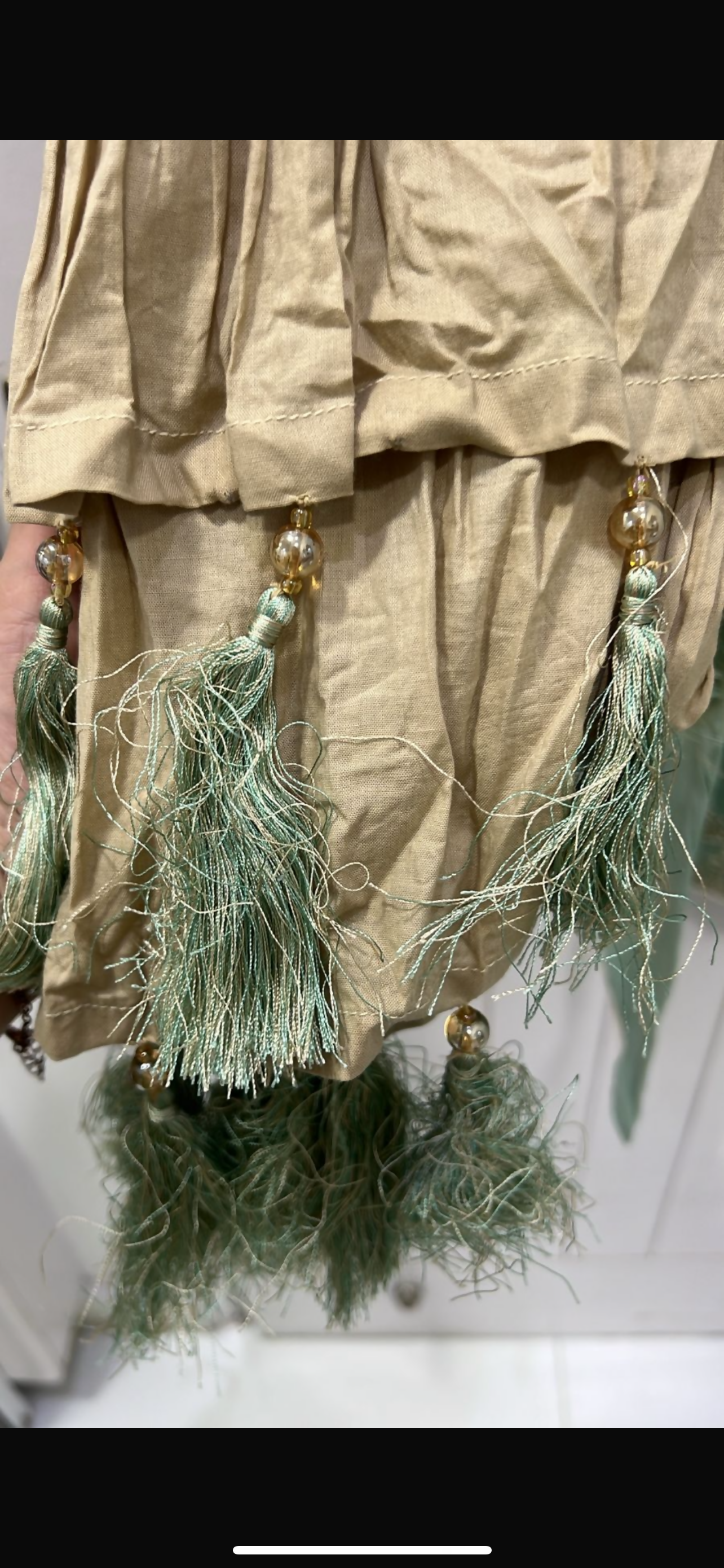 | MATERIAL & MEASUREMENT | Embroided cotton kurta with A-line style And chunn dupataa with tussels. Measurement : A-line :39 inches Chest :19 Length: 35 |