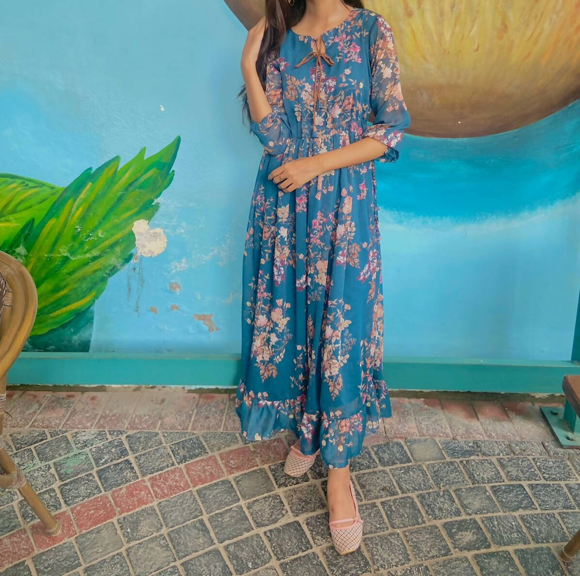 Kapray Mart | Floral chiffon maxi | Women Frocks & Maxis | Medium | Worn Once is backordered and will ship as soon as it is back in stock.