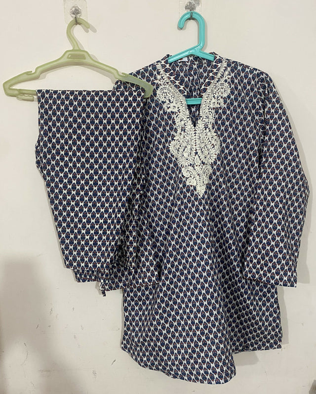 | MATERIAL & MEASUREMENT | Material: Cambric Measurement: Chest: 21 Length: 32 Trouser: Waist: 14 Length: 36 |